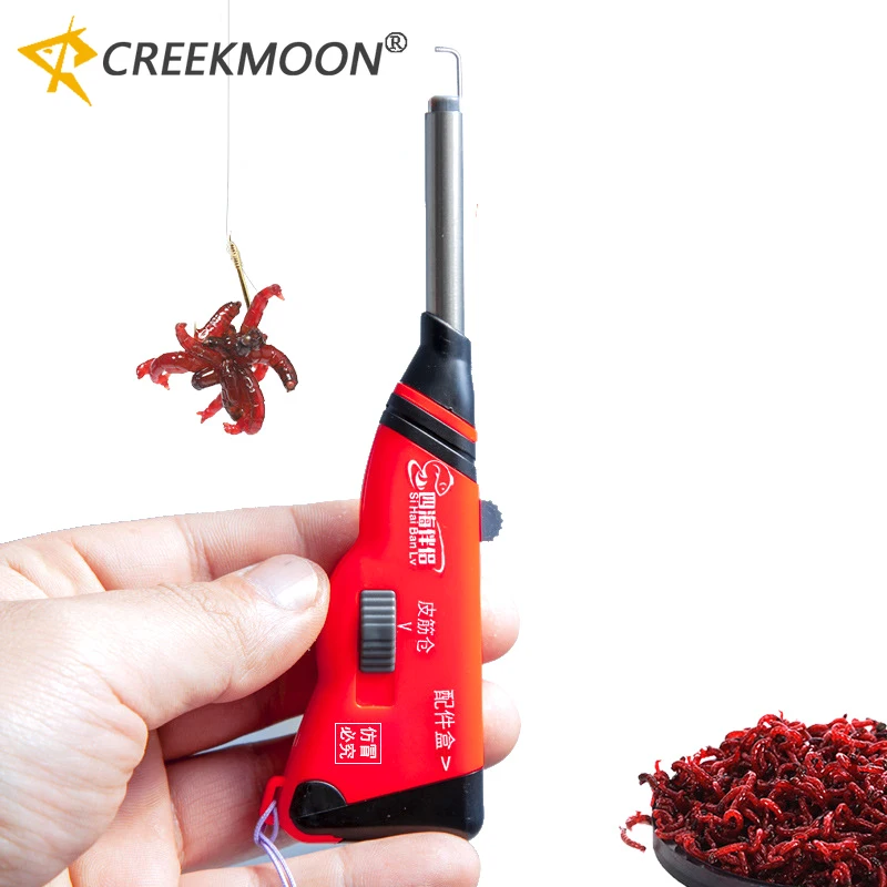 Clip de cebo de gusano rojo automático, herramienta de pesca de acero inoxidable, juego de aparejos terminales, herramienta de recogida de señuelos con banda de goma