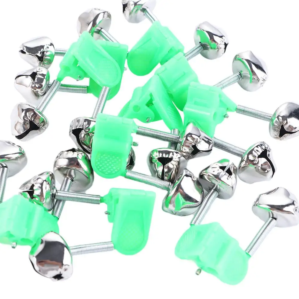 Material: plastic clip+ metal head Color: light green Style: spiral bell Size :about 4.5*1.8cm Packing includes :10pcs/lot Fishing Bite Alarms