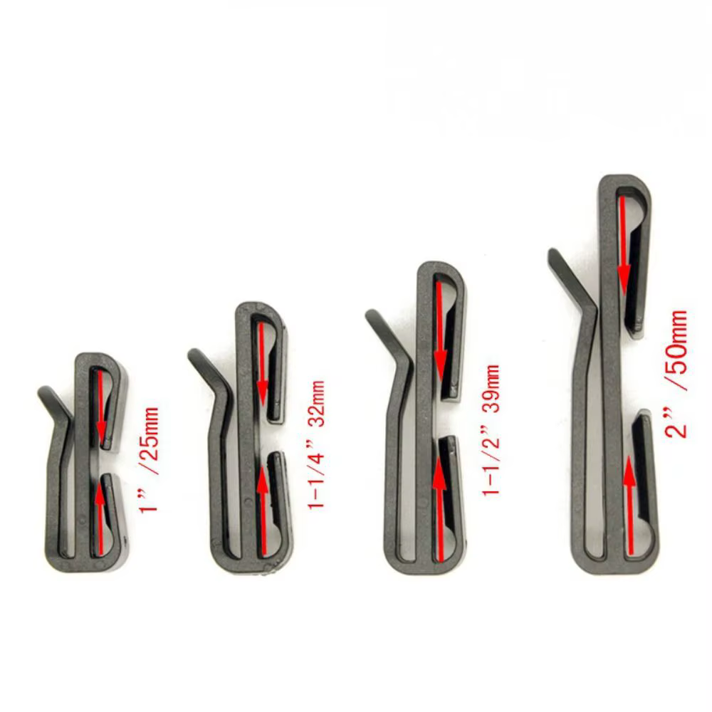 Material: plástico acero Color: negro Tamaño: como muestra la imagen Ancho de la correa adecuado: 25mm, 38mm,50mm El paquete incluye: clip de hebilla de cintura de 5 piezas 1,1 cm=10Mm=0,39 pulgadas. 2. Permita un error de 1-2MM debido a la medición manual y asegúrese de que no le importe antes de realizar el pedido. 3. Por favor, comprenda que los colores pueden existir aberración cromática debido a la diferente ubicación de las imágenes.