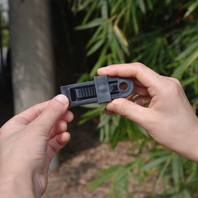 Funciones multiusos: los clips de lona están diseñados para proporcionar a los entusiastas del aire libre, viajeros y aventureros un accesorio versátil y fácil de almacenar. Conveniente para cualquier uso: acampar al aire libre, tienda de campaña, toldo, lona, lonas y más.