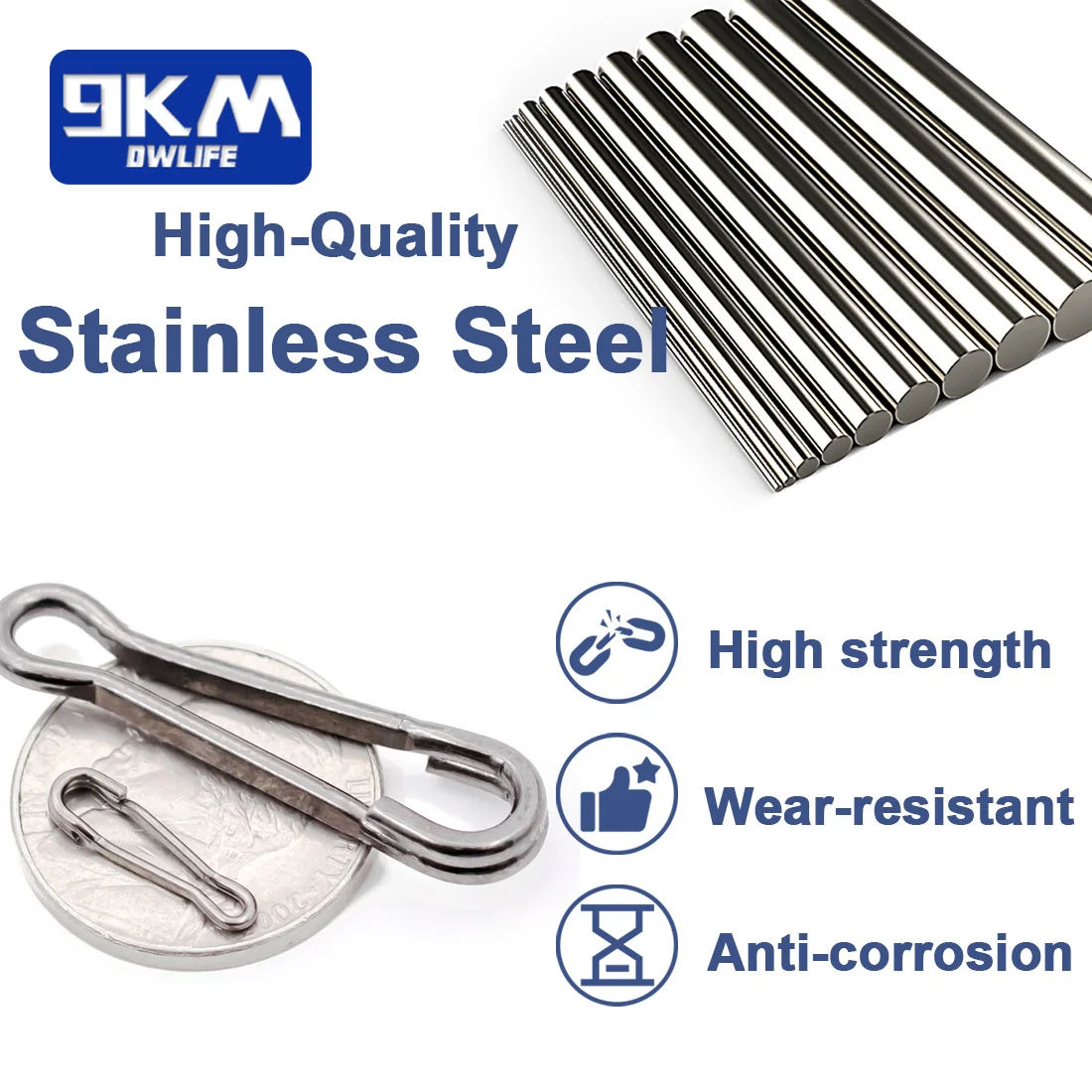 Alta calidad: los broches de pesca están hechos de acero inoxidable.Termina el níquel todo el cuerpo giratorio del mosquetón de pesca.que aseguran su alta calidad, ideal para su exterior.
