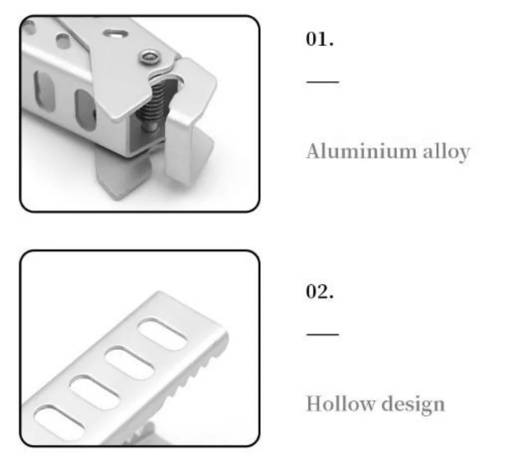 Tight clamp, leaving no gap; Hollow design, heat reduction more portable; Tail teeth, portable clip; The whole body is made of aluminum, small and delicate