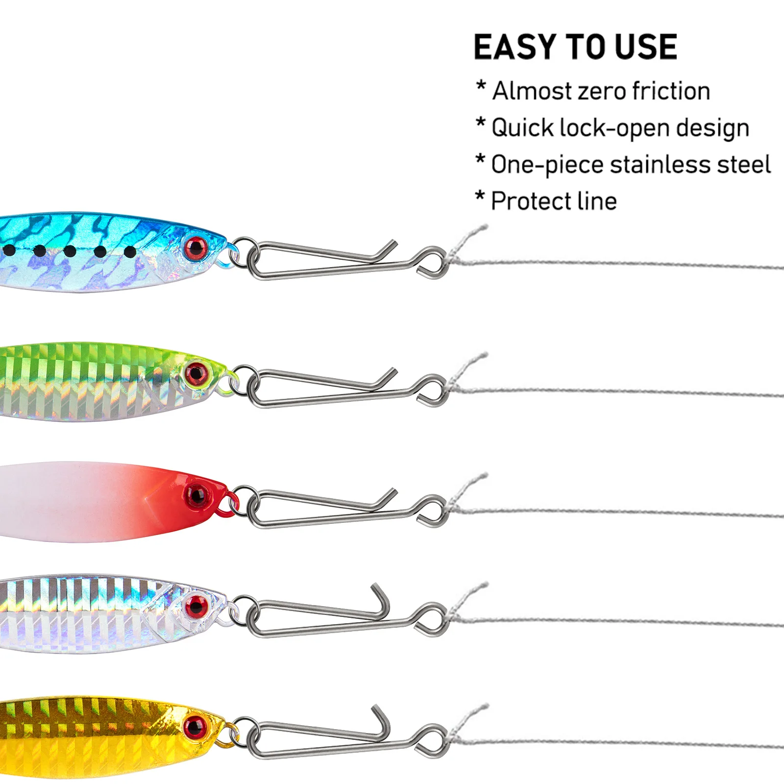 Fiable:Excelente resistencia a la corrosión, resistencia a la abrasión y resistencia a los golpes. El broche colgante de cambio rápido funcionaría muy bien para el curricán de alta velocidad, el jigging, la pesca en alta mar, el agua dulce y el agua salada.