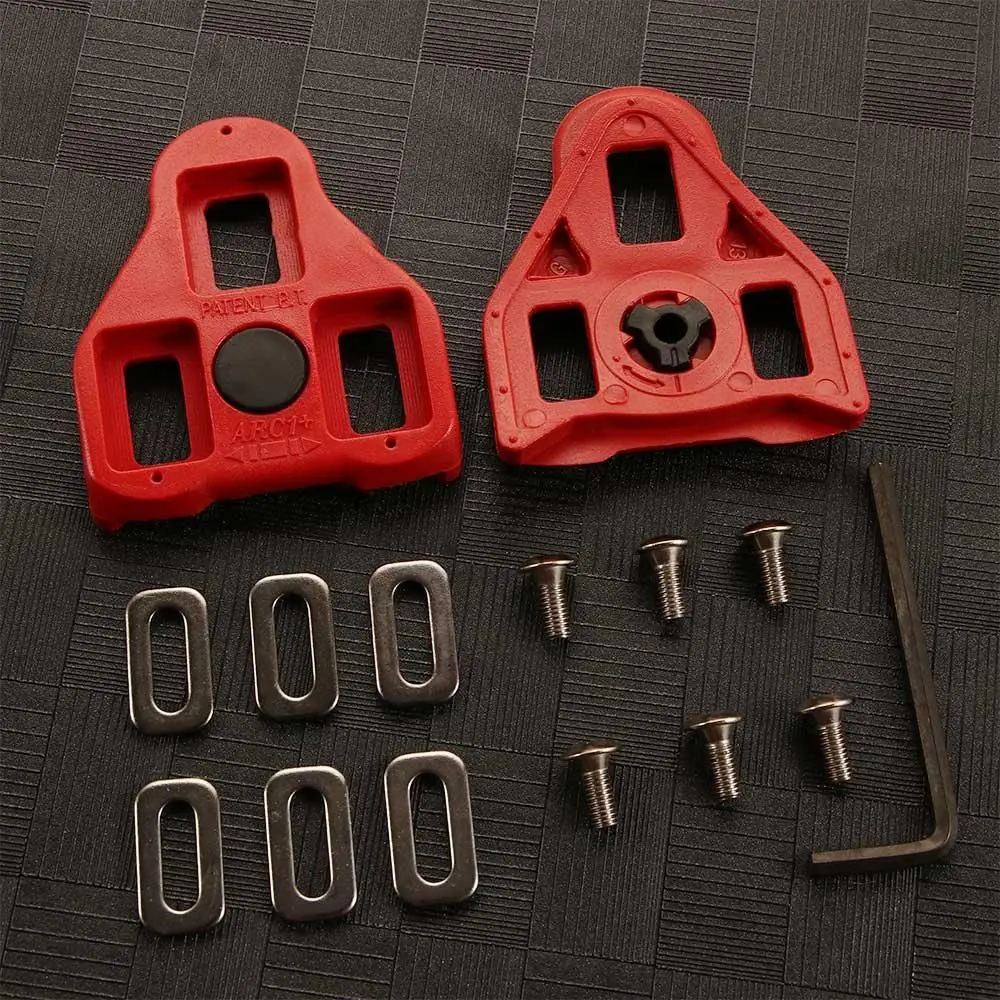 Type: Pedal Cleats Material:Metal Quantity:1 set Color:Red Pack Includes :1 set Pedal Cleats Package includes: 2 cleats, 6 cleat washers and 6 cleat mounting bolts,1 Wrench