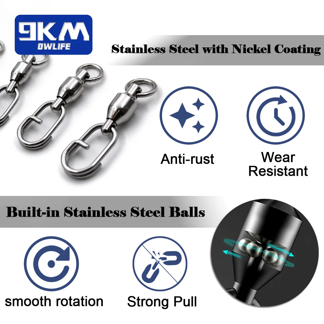 [Excelente material] Los giratorios de rodamiento de bolas de pesca DWLife de 9 KM están hechos de latón de primera calidad y acero inoxidable. Los giratorios de pesca se pueden utilizar durante largos períodos de tiempo en agua salada.