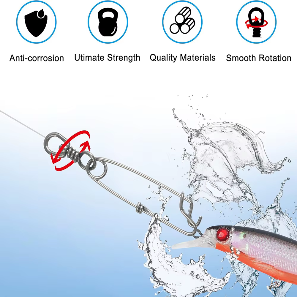 3.Clips de pesca fabricados en material de acero inoxidable, que tiene una larga vida útil.Excelente resistencia a la abrasión y a los golpes.