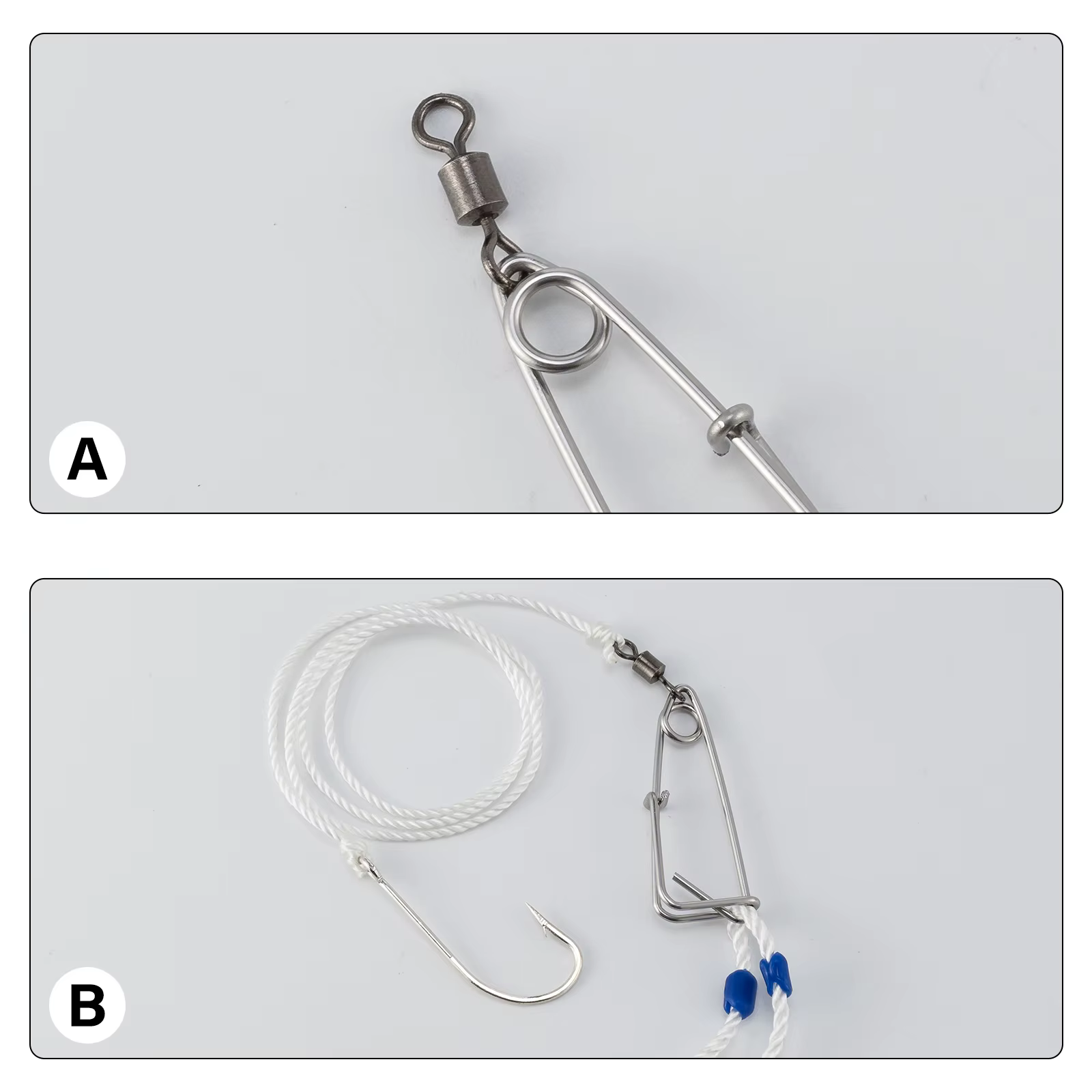 Clips Trotline de acero inoxidable para pesca, conectores a presión giratorios de 48mm y 53mm, de cambio rápido, 10 unidades