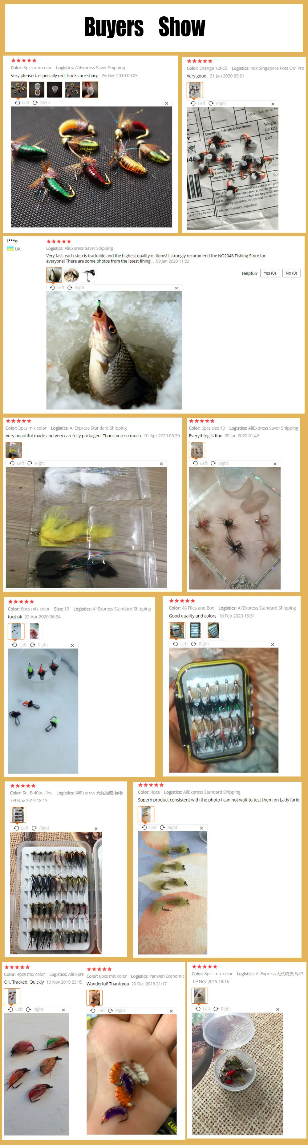 - Moscas atadas con gancho de acero inoxidable, apto tanto para agua salada como dulce.