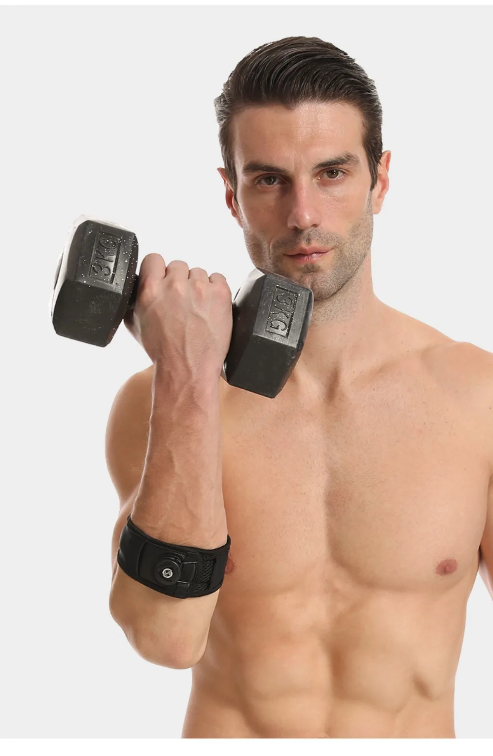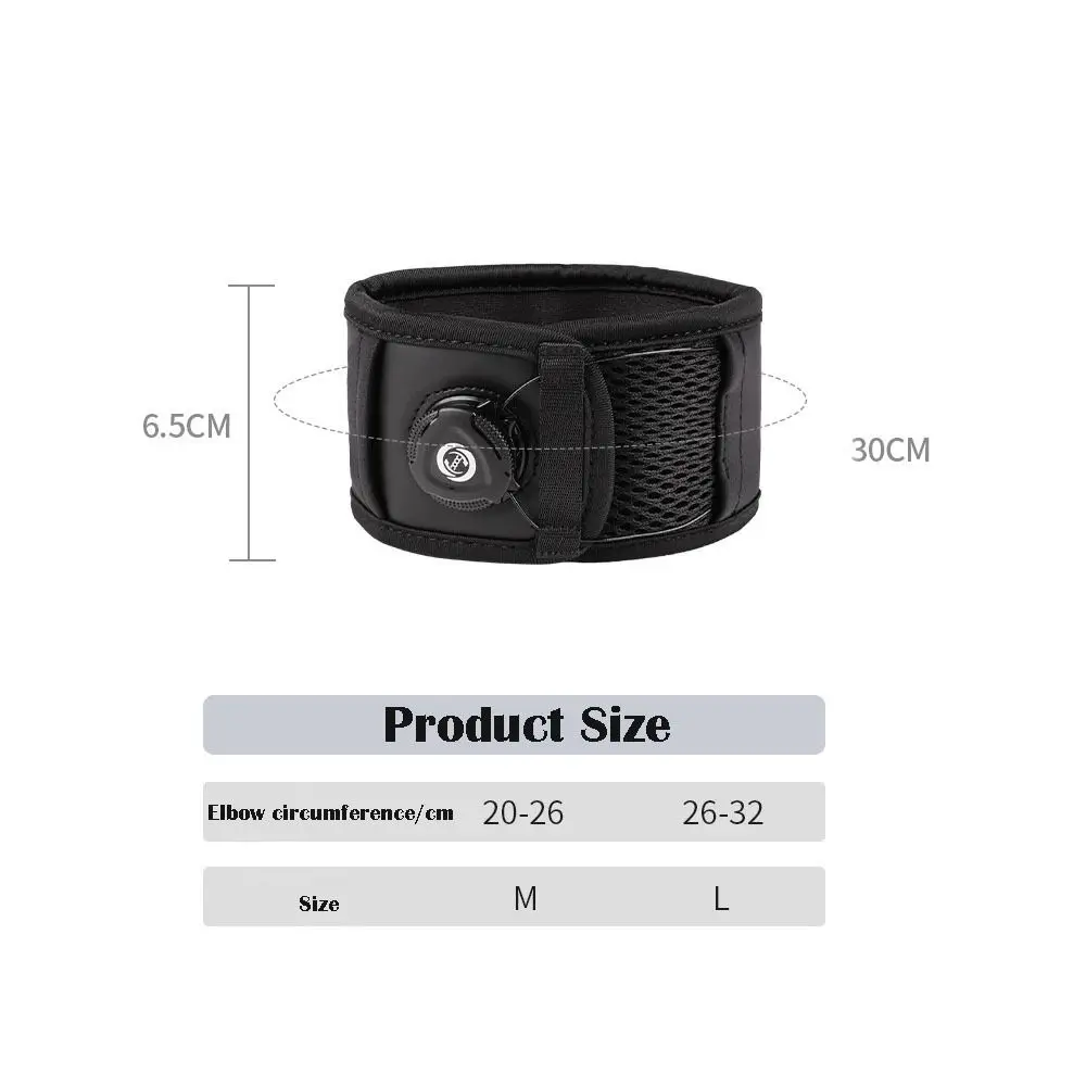 Brand new and high quality Material: POLYESTER+silicone Color: Black Size: M/L Item Type: Elbow Brace Package Included: 1 X Elbow Brace Note: 1. There is a 2-3% difference according to manual measurement. Please check the size carefully before you buy the item. 2. Please note that a slight color difference should be acceptable due to the light and screen.