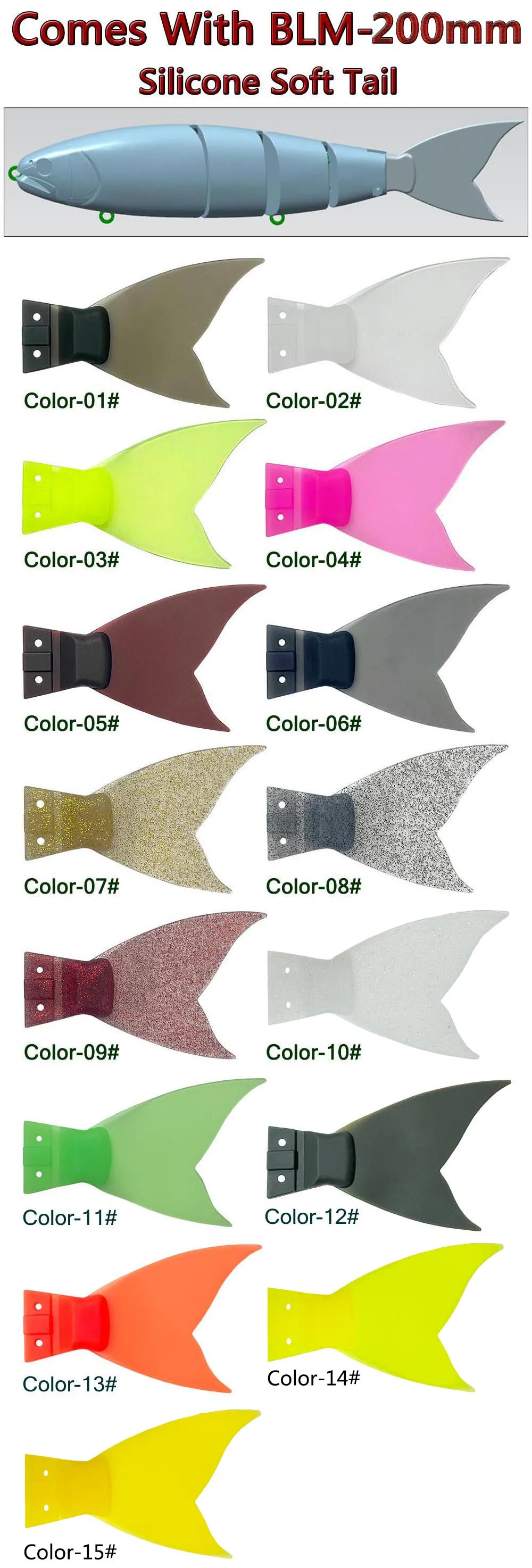 Cola de repuesto de cebo articulado de 200mm para cebo Gaint, construcción de plástico de silicona japonesa resistente para mayor durabilidad