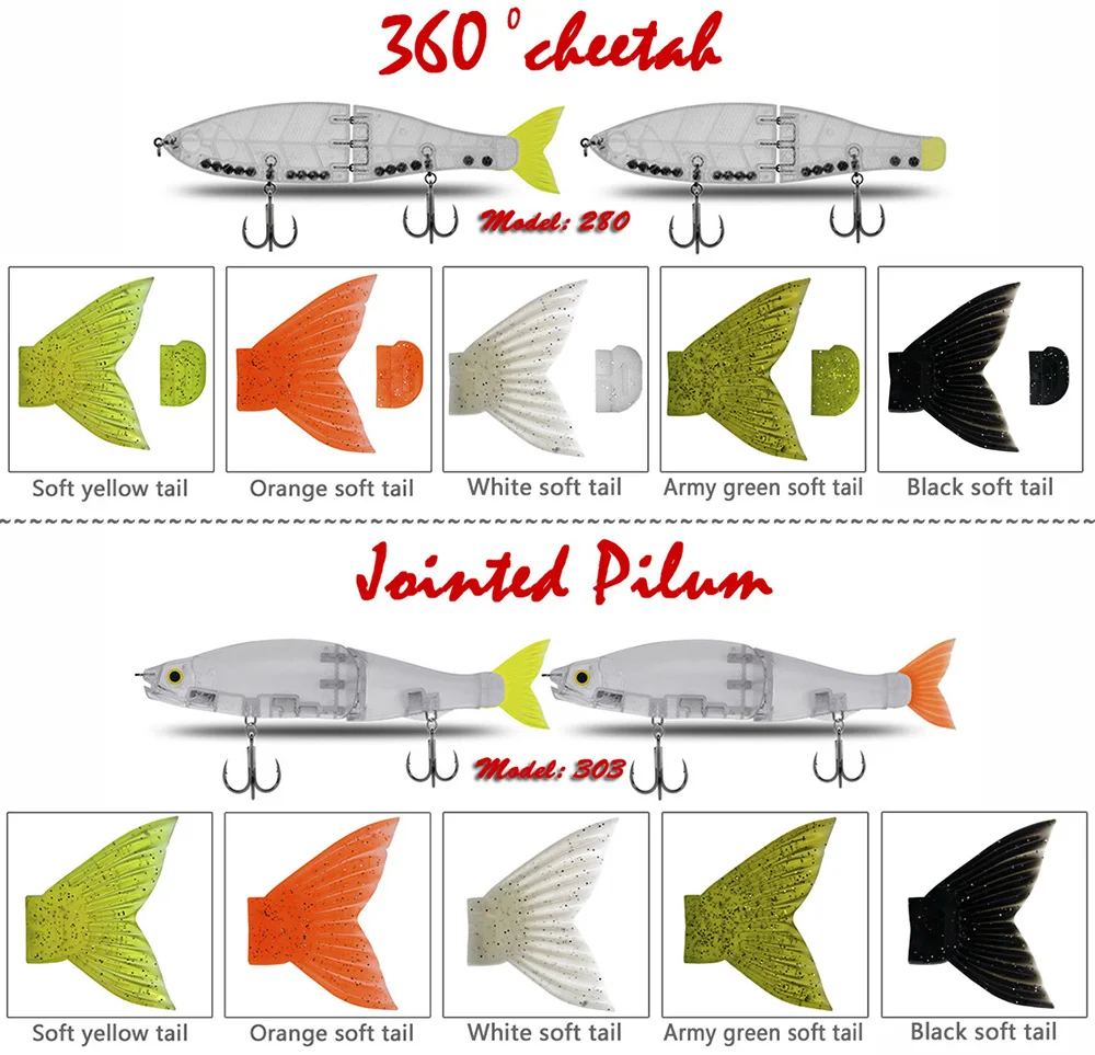 Cola suave para CF LURE "PILUM", 303mm, 350mm, giro de 360 grados, 280mm, señuelo articulado, cebo de natación