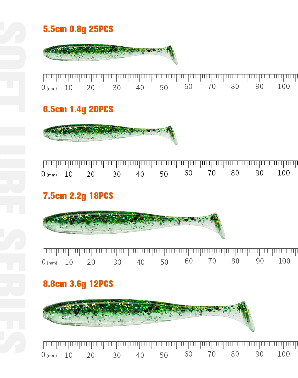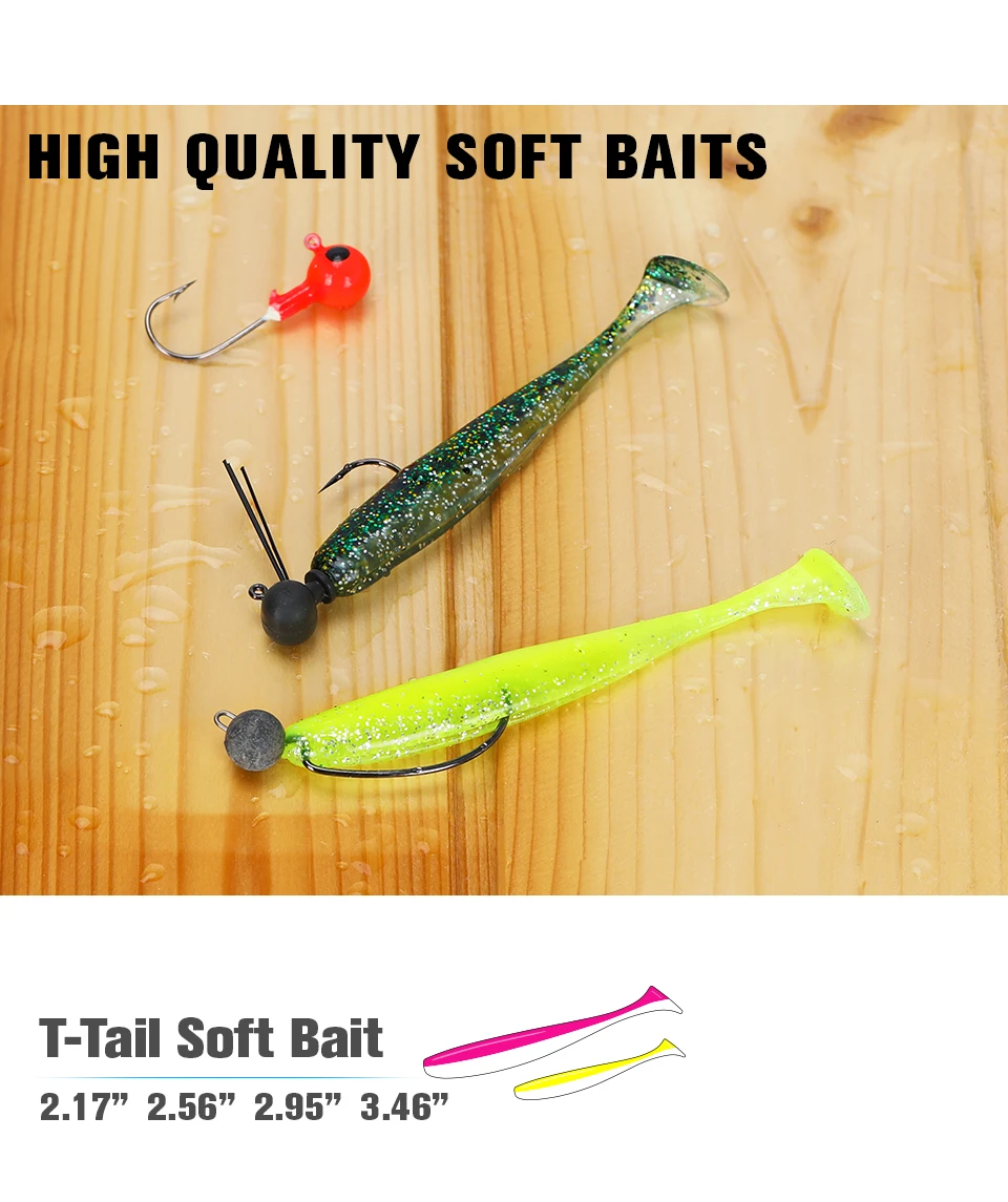 TSURINOYA señuelos de pesca de cola en T de 75mm y 88mm, señuelos blandos artificiales, aparejos de cebo, cebos de lucio de doble color