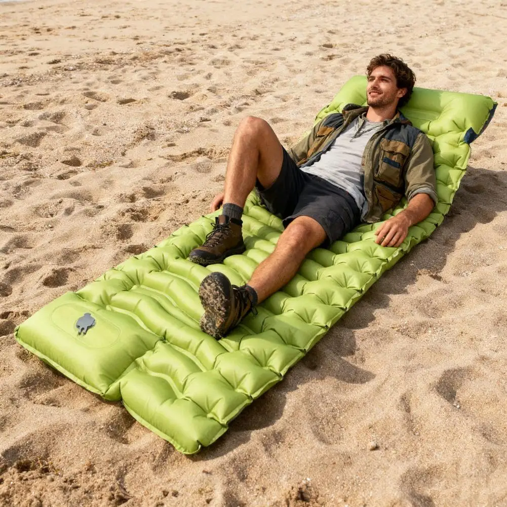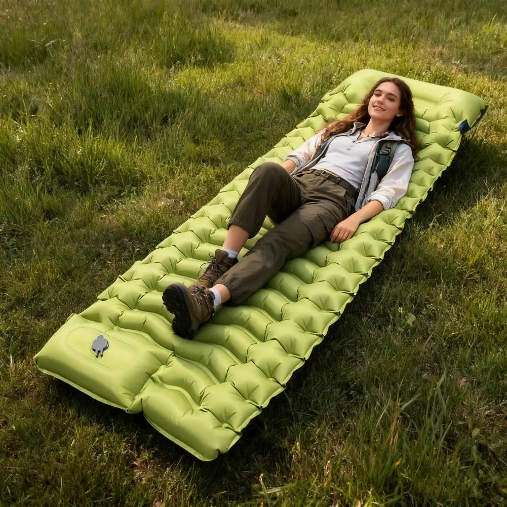 Colchoneta inflable para dormir, almohada con bomba para pies integrada, ligera, gruesa, portátil, para una sola persona, viajes al aire libre, Camping, senderismo, colchón de aire, colchoneta para dormir