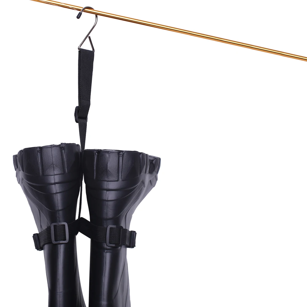 Diseño Universal con correas anchas ajustables que se adapta a todas las botas y botas de pie de arranque de pesca, fácil de usar-poner las botas en bucles, ajustar las correas con las hebillas y colgarlo.