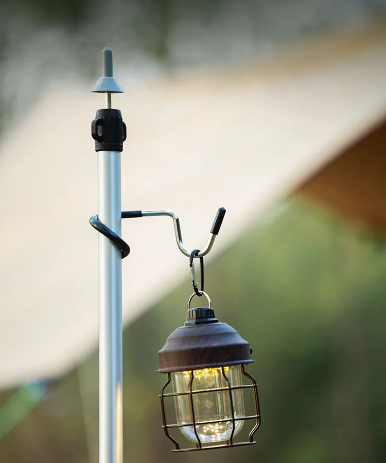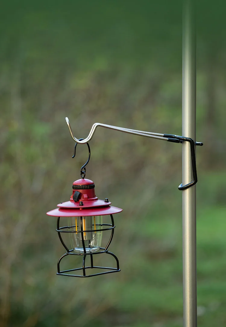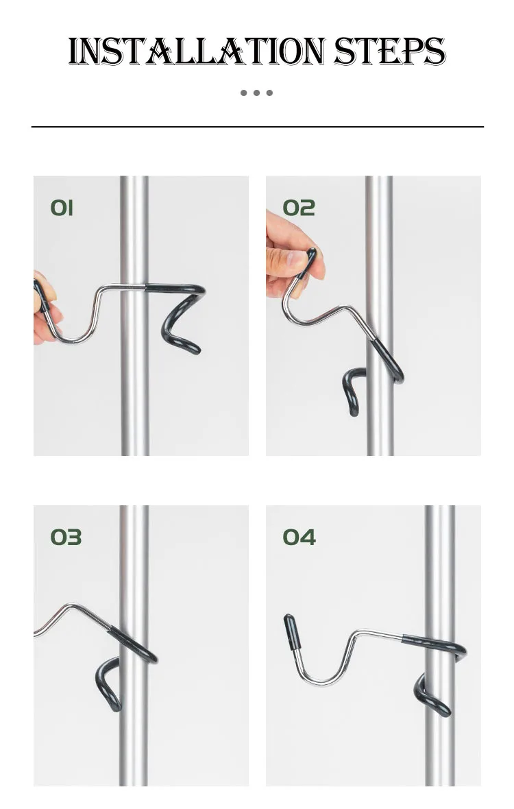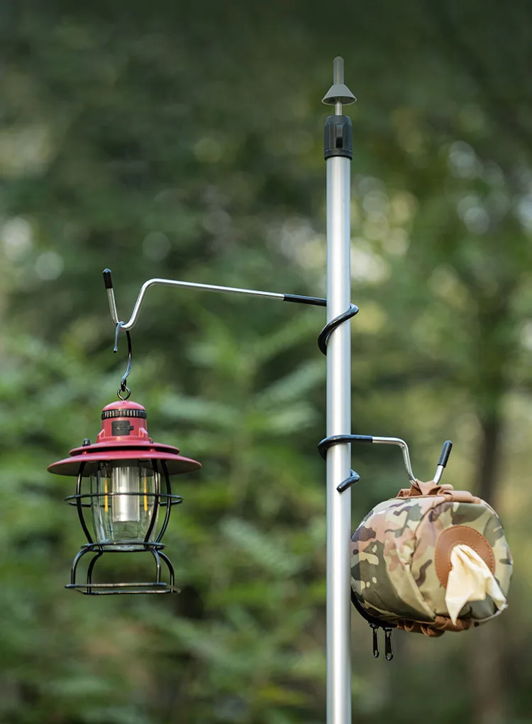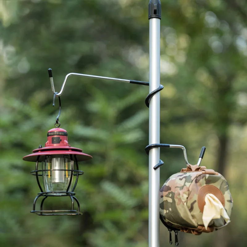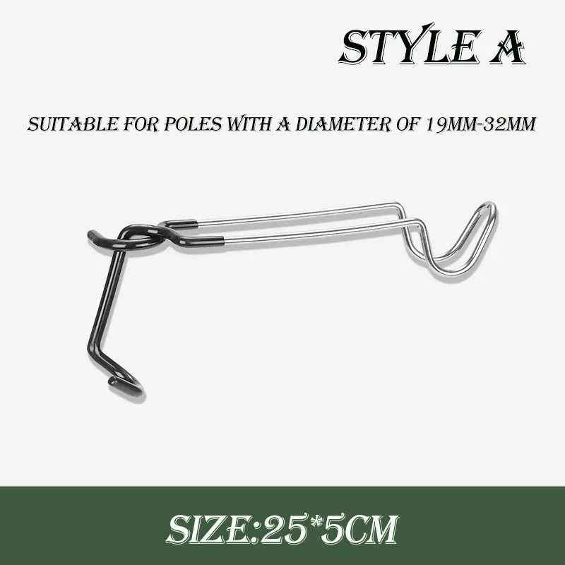 El soporte tipo abrazadera de gran tensión se fija en el poste y el diseño de doble gancho dispersa eficazmente el peso y se puede utilizar para colgar varios objetos pesados, como luces de camping y redes de secado.