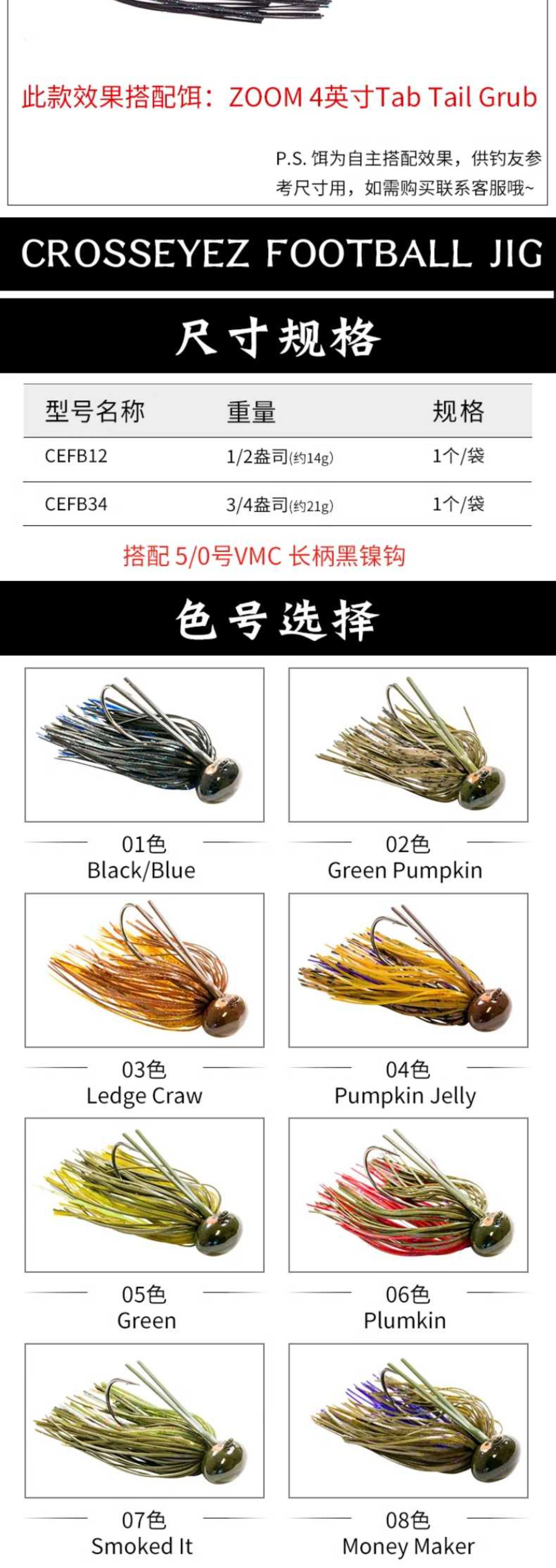 Colgante de plomo ZMAN Football Jig importado de EE. UU. CROSSEYEZ JIG cebo de pesca