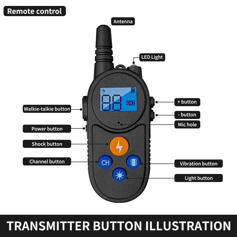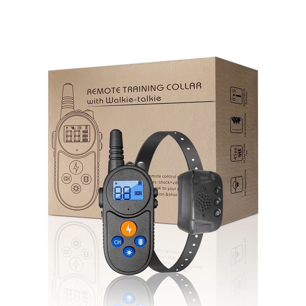 Collar de choque para perro walkie-talkie, Collar de entrenamiento para perros grandes, medianos y pequeños, impermeable, recargable, vibración