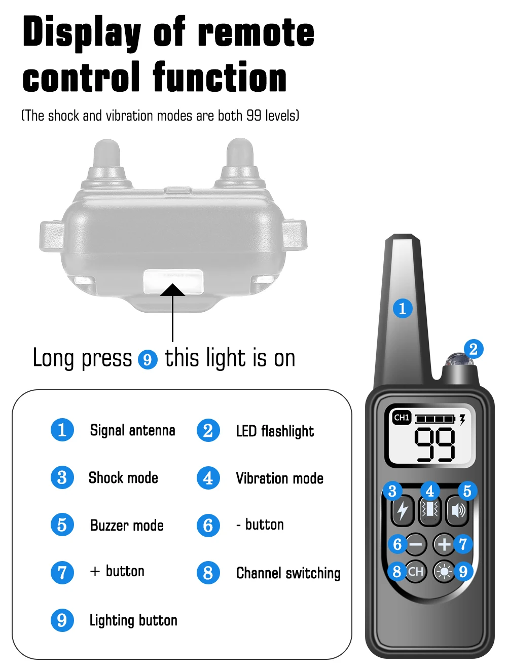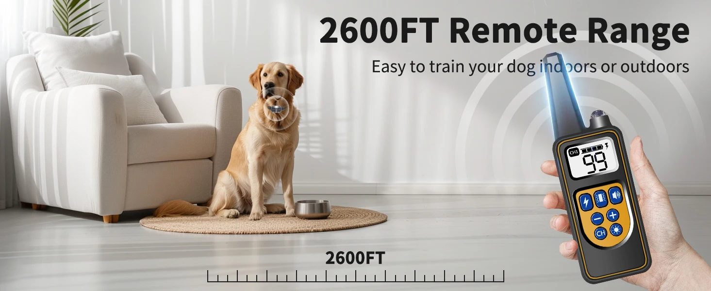 Collar de choque para perros, Collar de entrenamiento para perros de 3 a 2600 pies, con control remoto IP67, Collar eléctrico impermeable con 4 modos de entrenamiento