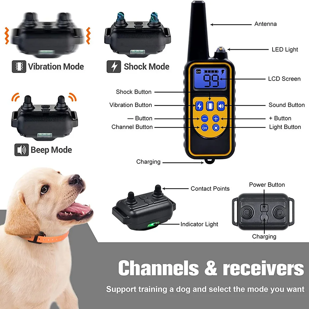 Collar de entrenamiento eléctrico para perros de 800m, resistente al agua, con Control remoto para mascotas, collar de entrenamiento recargable para perros con sonido de vibración de choque, 40% de descuentoDescripción:Especificaciones:Tipo de batería: batería de iones de litio (incorporada)