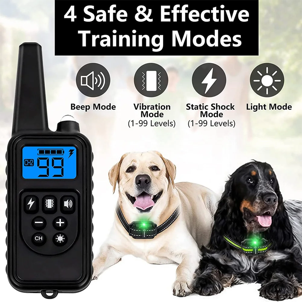 Collar de adiestramiento para perros resistente al agua con 5 modos de entrenamiento, pitido, vibración, choque, luz y bloqueo con teclado, lo ayuda a enseñar a un perro los comandos básicos de obediencia y a resolver los problemas de comportamiento de un perro incontrolable.Collar eléctrico de entrenamiento para perros con cerradura de teclado de seguridad: el bloqueo de teclado de seguridad evita cualquier error de funcionamiento en el control remoto.Niveles estáticos ajustables de forma segura 0-99: puede ajustar el nivel estático preciso y cómodo para su perro.Collar de entrenamiento electrónico ajustable y resistente al agua IP68: el receptor del collar de entrenamiento es resistente al agua y ofrece a sus mascotas la máxima flexibilidad durante las actividades al aire libre.Duración extralarga y batería recargable: control remoto y receptor recargables, un cable de carga USB general incluido en el paquete puede cargarlos al mismo tiempo.Después de 2 horas de carga completa, el collar puede funcionar entre 15 y 20 días.No se utiliza para el entrenamiento de cachorros menores de 6 meses.Collar de entrenamiento recomendado para perros pequeños, medianos y grandes de más de 10 libras. Sugerimos usar el modo de vibración/bip para entrenar a su perro. El modo de choque siempre debe ser el último modo de uso. Cualquier problema, contáctenos por correo electrónico, siempre estaremos aquí para ayudarte.