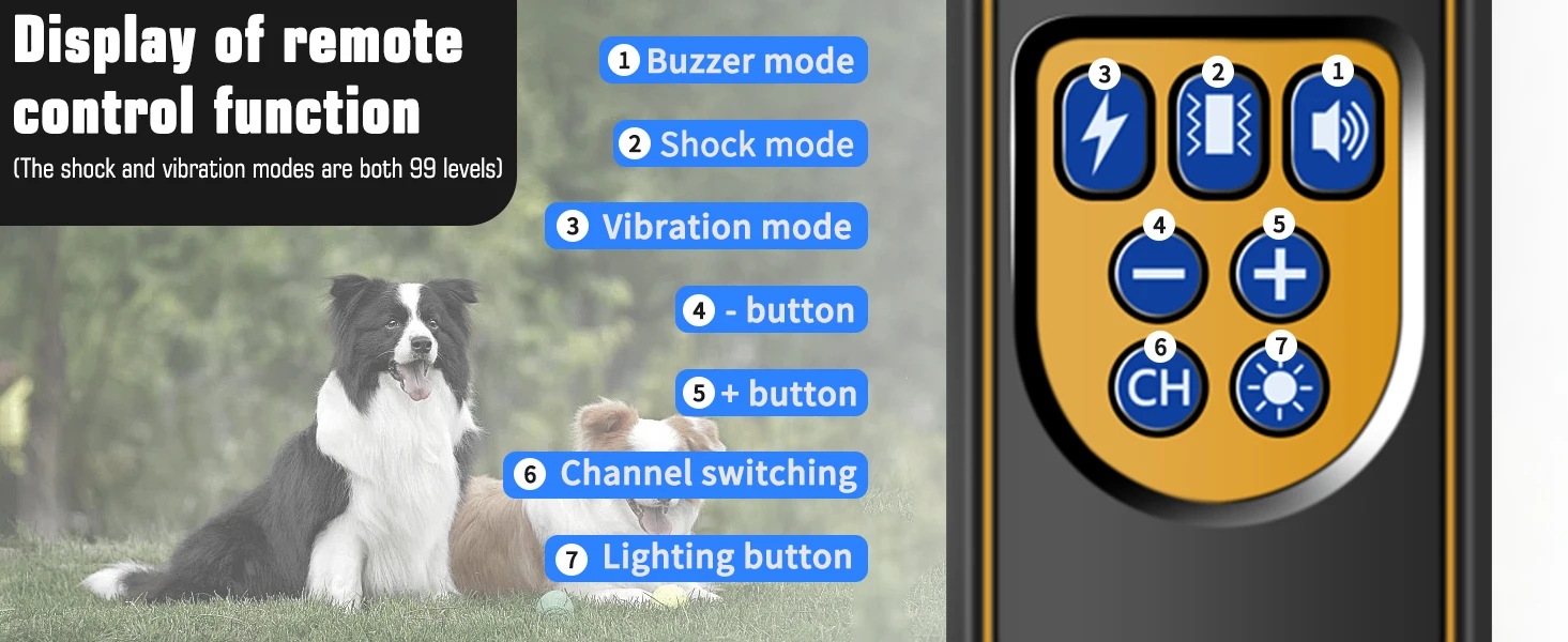 Collar de entrenamiento para perros Pupopan con control remoto IP67 Collar E impermeable para entrenamiento de perros con modos de luz y pitido vibratorio de choque