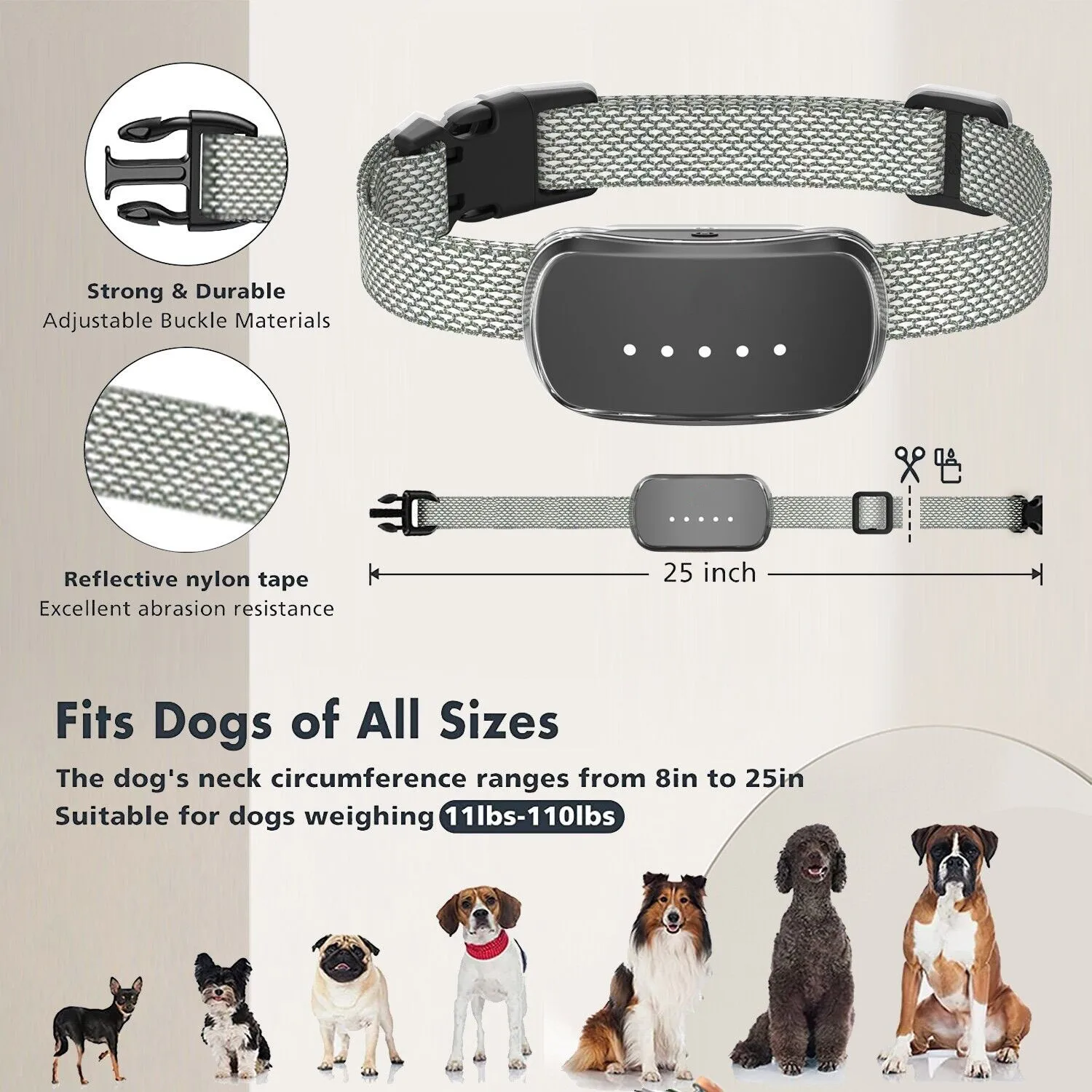 Niveles de sensibilidad inteligentes ajustables: el collar de ladridos para perros ofrece 5 niveles de sensibilidad a los ladridos de los perros. Estos niveles de sensibilidad funcionarán con diferentes perros.
