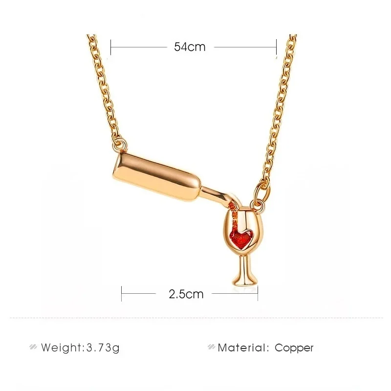Descripción del producto: Collares de botella de vino con corazón rojo de cristal para mujer, diamantes de imitación, oro rosa, Color plata, colgante de cristal, joyería con dije, cadena para clavícula
