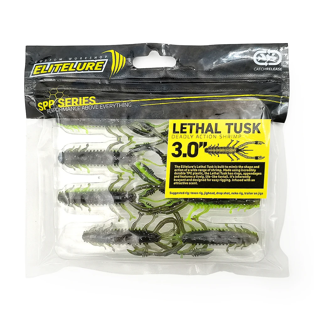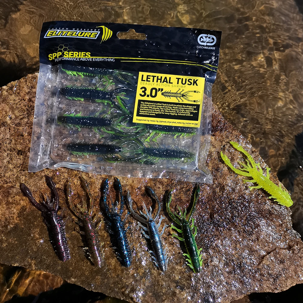 Lethat Tusk es molido para imitar la forma y la acción de una amplia gama de camarones.fabricado con plástico TPE increíblemente duradero.el Lethat Tusk tiene anillos.Aparece flotante y presenta un ambiente animado.Fantail Life-Uke, está flotando internamente y diseñado para montar fácilmente, infundido con un aroma atractivo.