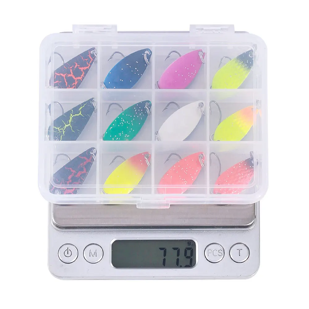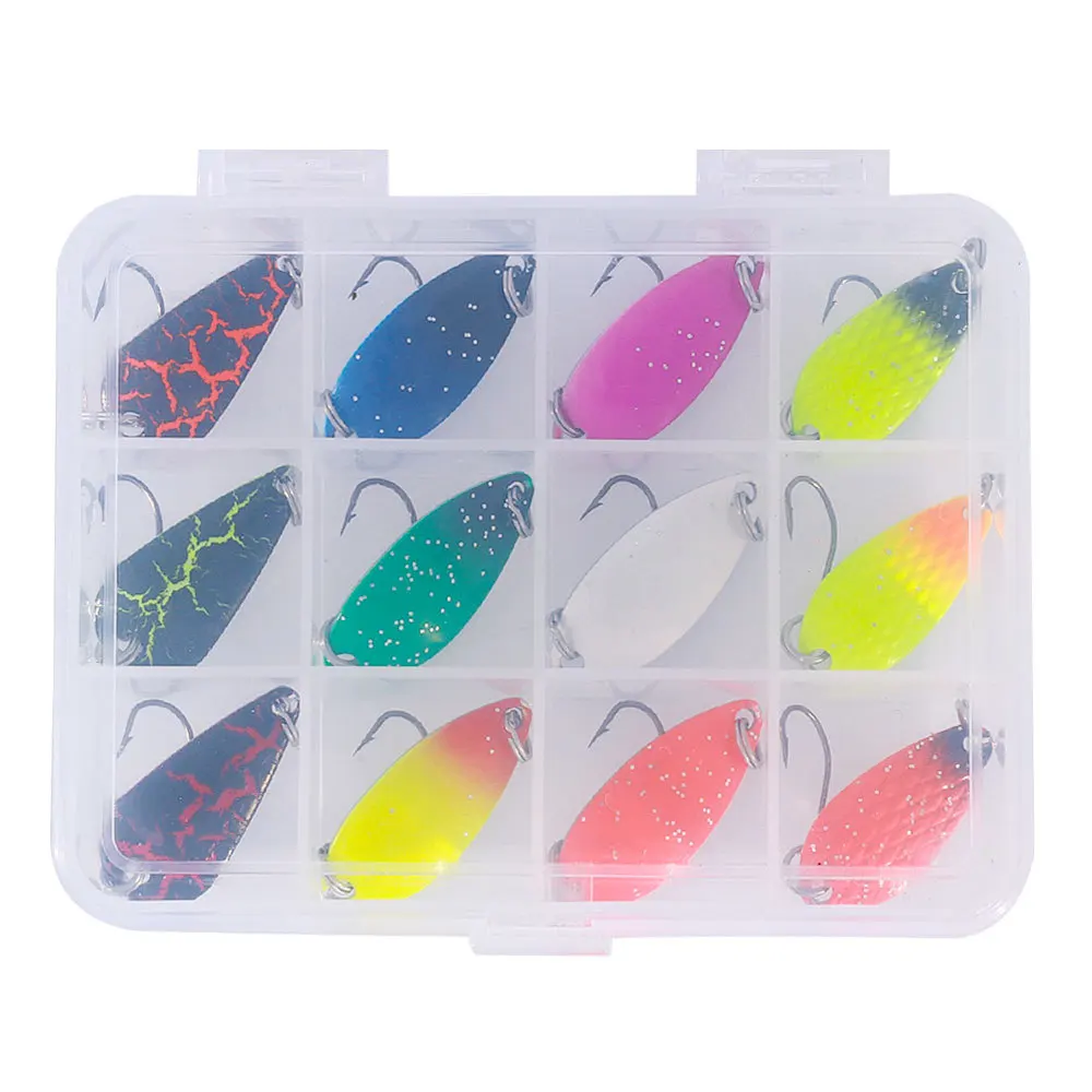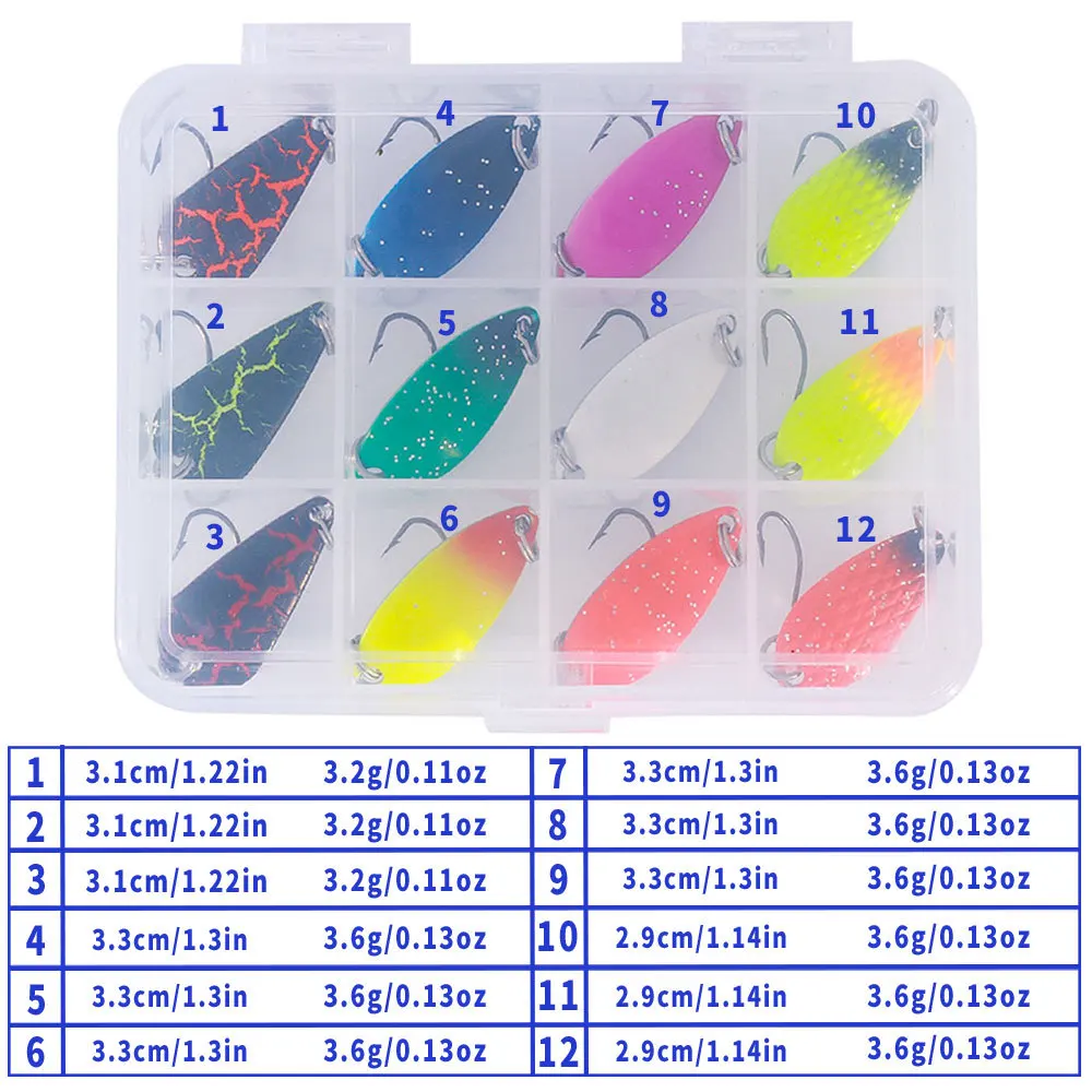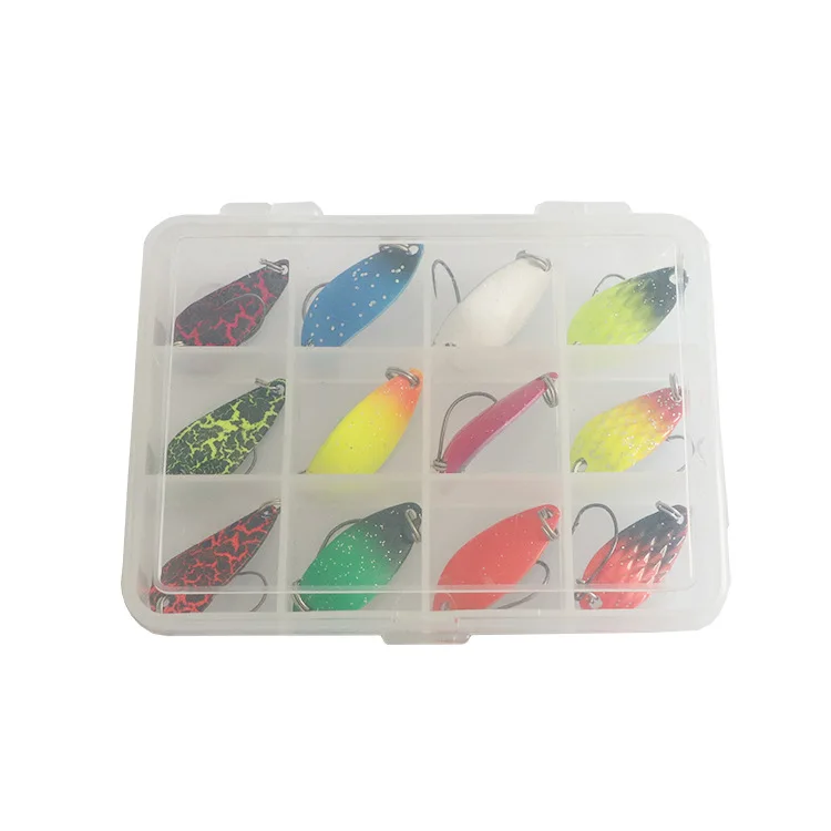 Color aleatorio 12 unids/set Jig lentejuelas camino corredor cebo conjunto un solo gancho cuchara rayas Warbler cebo falso cuchara lentejuelas Señuelos de Pesca