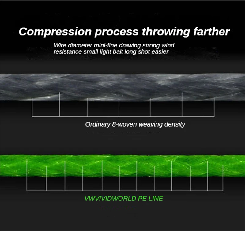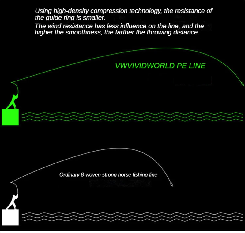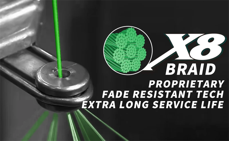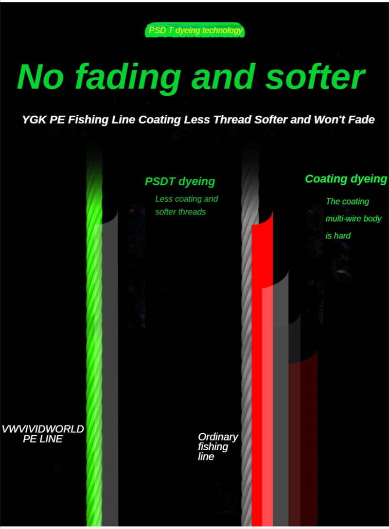 Tight weave, strong pulling force, small wind resistance, farther cast, anti-bite and wear-resistant, PSDT dyeing, less coating, softer thread