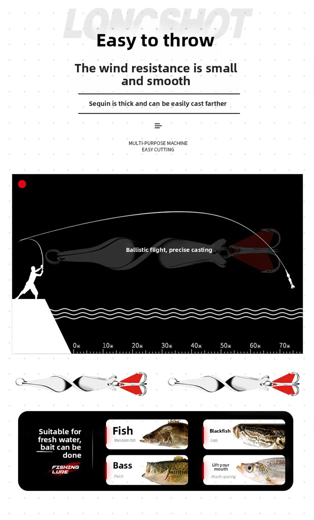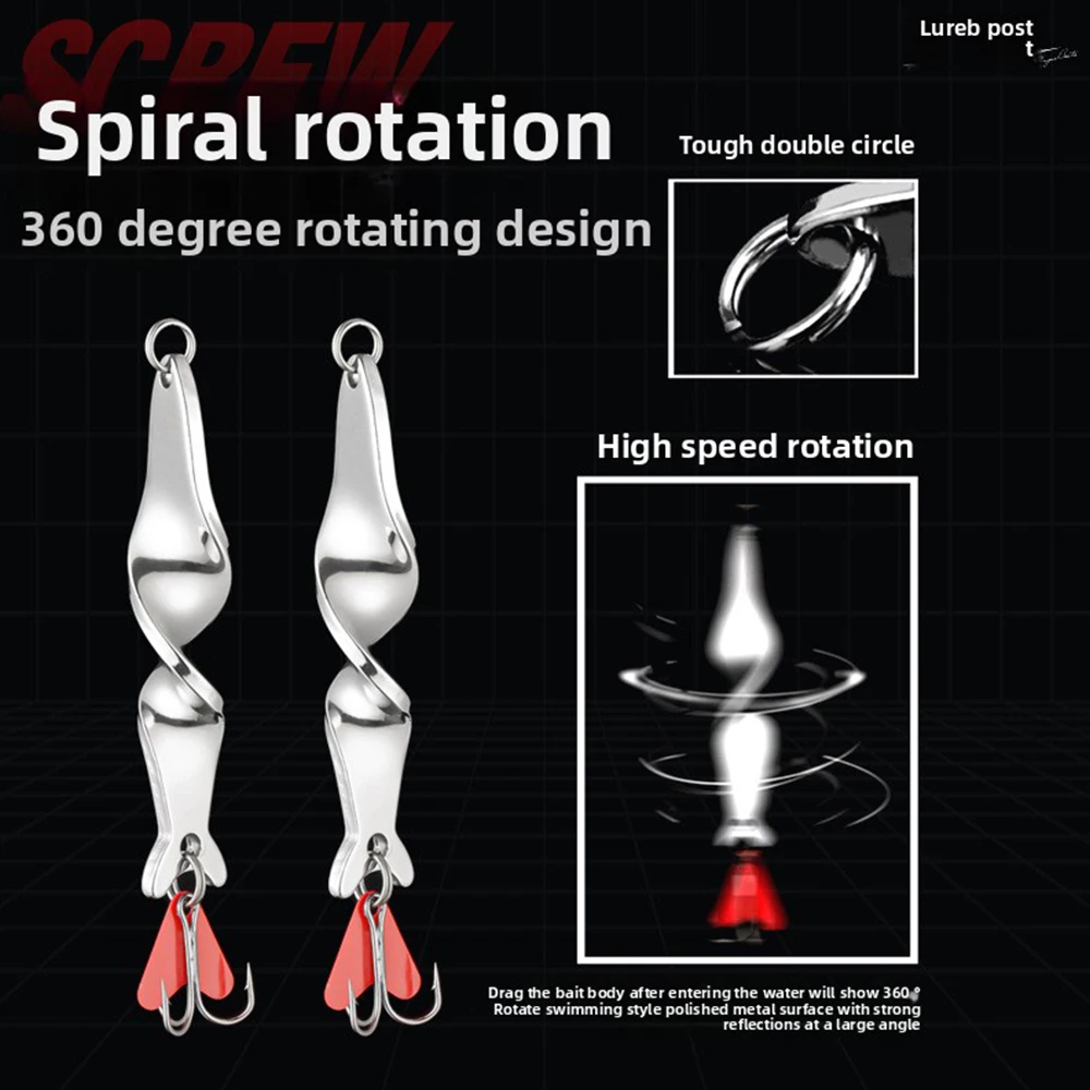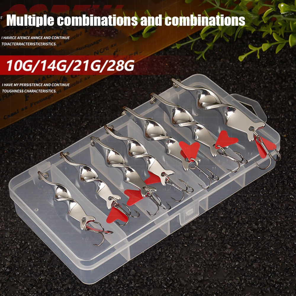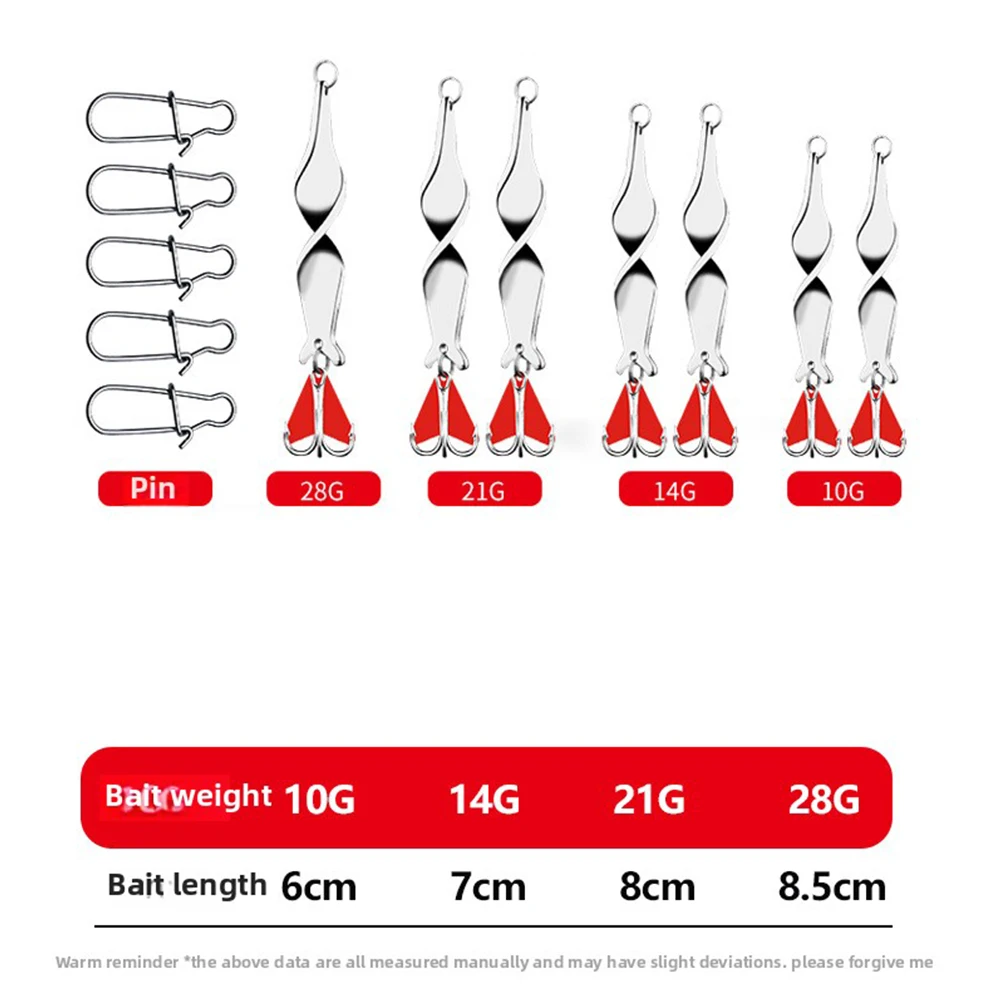 Trolling Spinning Spiral Cucharas de fundición larga Señuelo de pesca Spinner 10g 14g 21g 28g Rotación de tornillo Metal Jigbait Hueco rojo Lentejuelas