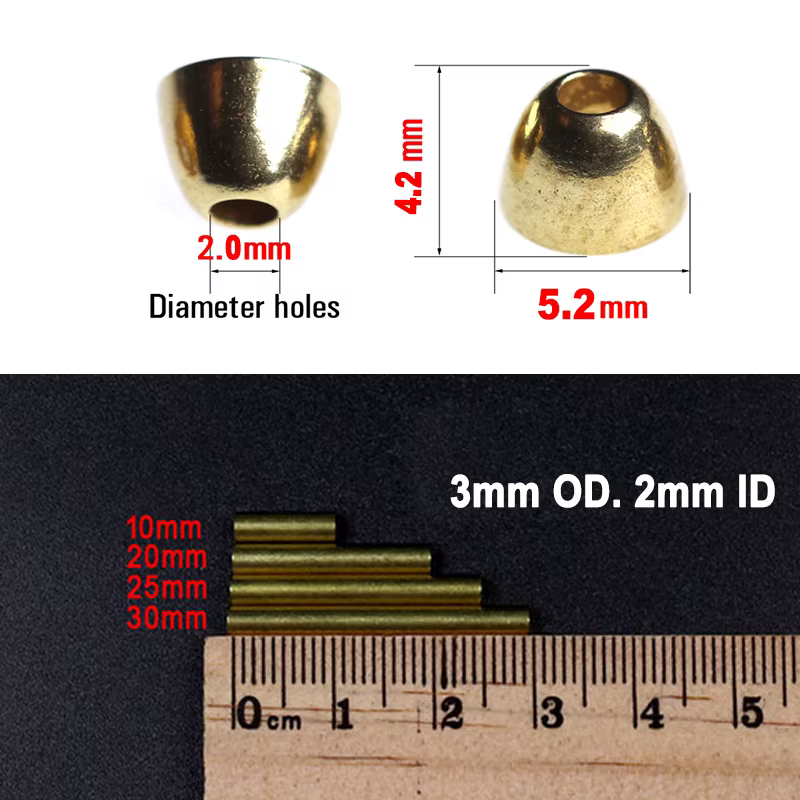 30 piezas X 5,5 mm de diámetro exterior, 2 mm de identificación.cabezas de cono de latón;