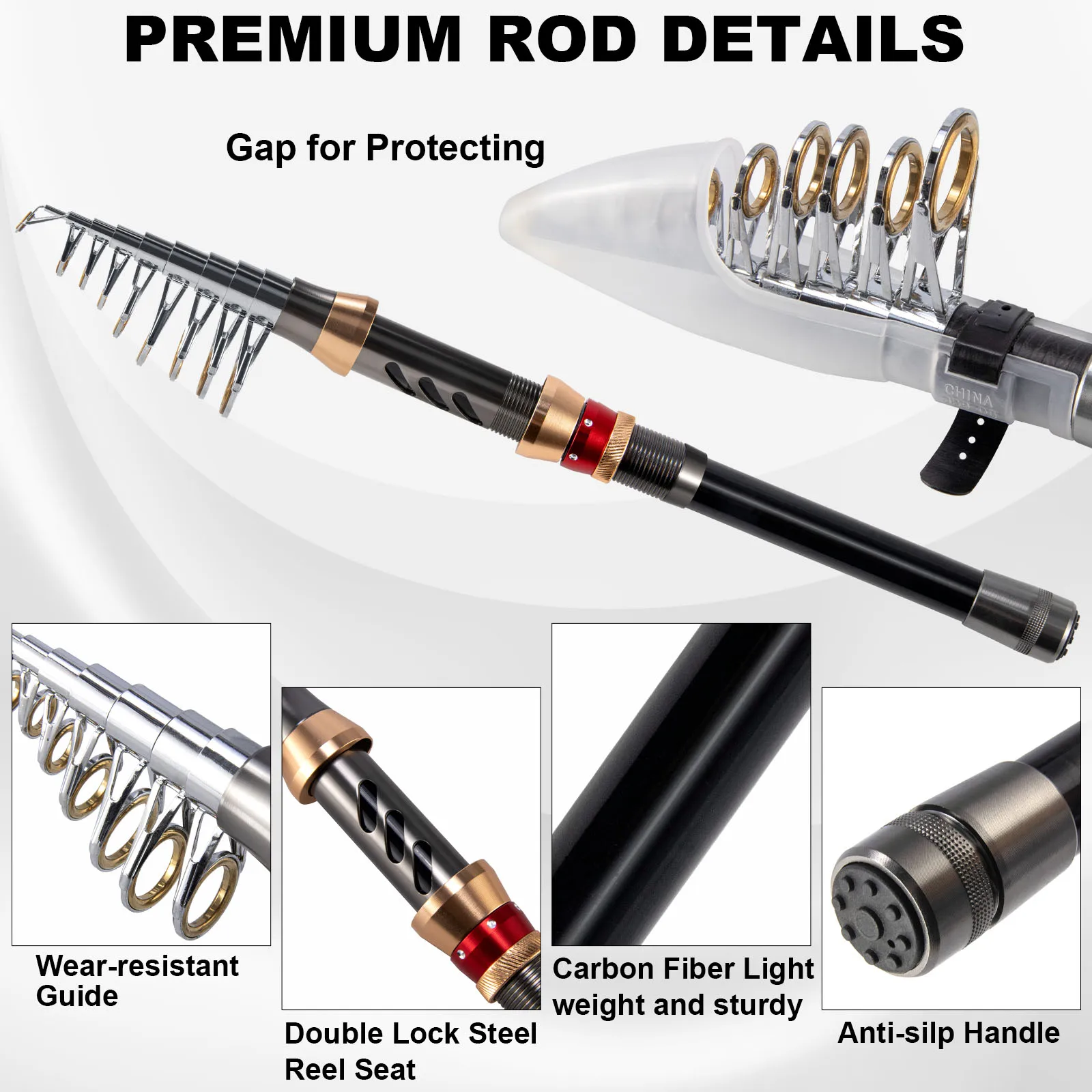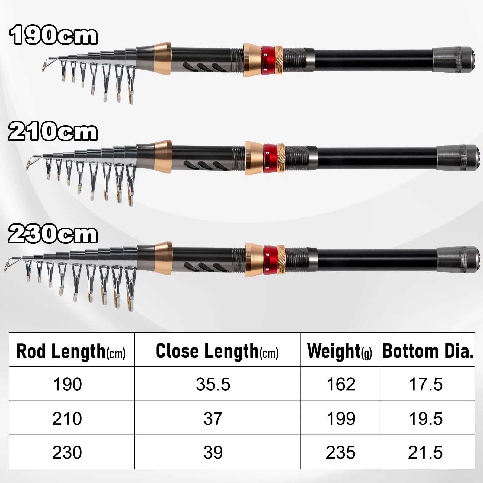 [Más opciones]: También proporcionamos tres longitudes diferentes de varillas para elegir, a saber: 1,9 m, 2,1 m, 2,3 M, ¡y los accesorios y carretes incluidos son los mismos!