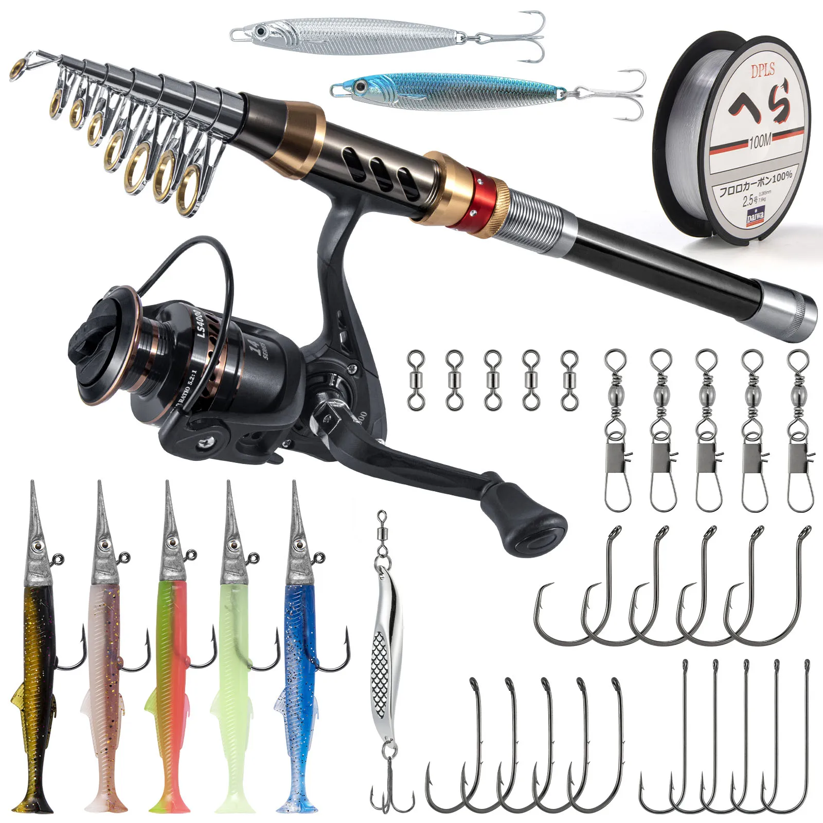 [Accesorios completos]: además de Cañas y carretes, ofrecemos una amplia gama de equipos de pesca de alta calidad. Tales como anzuelos de pesca en el mar, cucharas giratorias, señuelos suaves de lanzón, todo tipo de anzuelos y eslabones giratorios de pesca en el mar, sedales de pesca. Satisface tus necesidades de pesca en cualquier momento.