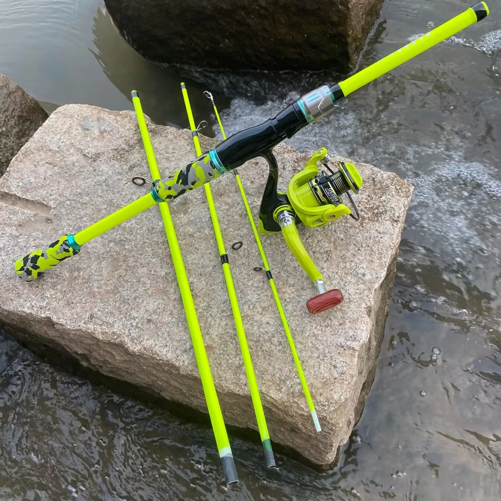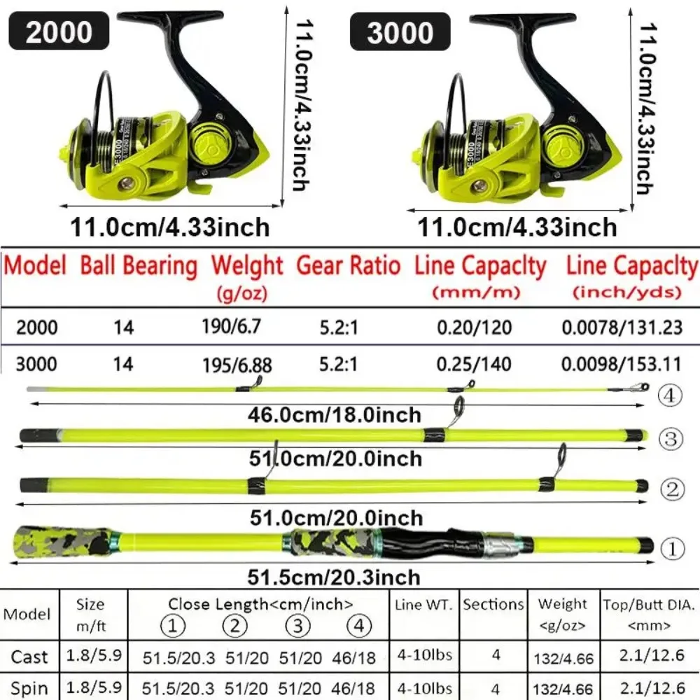 Combo de caña y carrete de pesca de 1.8/2.1M, caña de señuelo enchufable de 4/5 secciones, carrete de spinning 5.2:1 con línea para regalo, agua dulce y salada