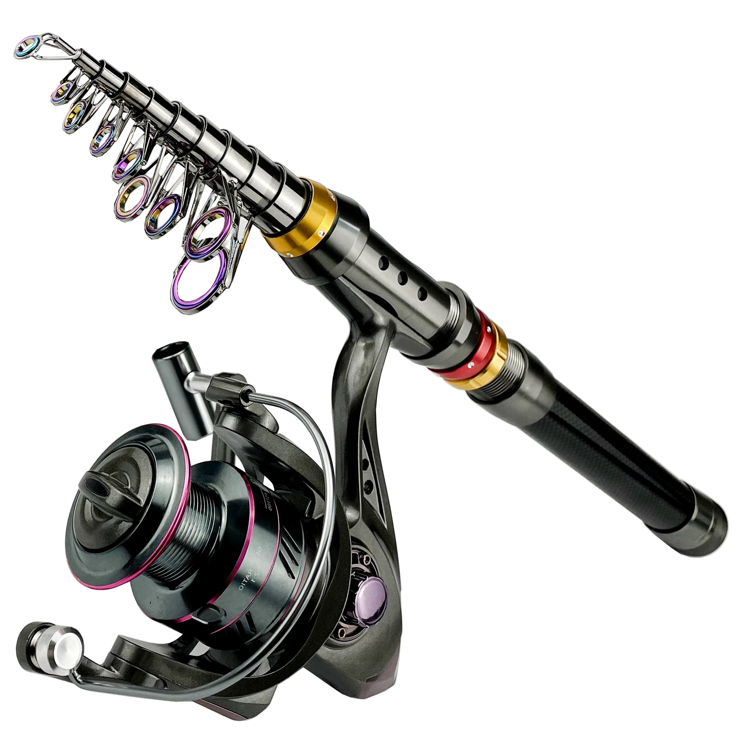 Combinación de caña de pescar telescópica y caña de pescar con rueda de carrete de pesca