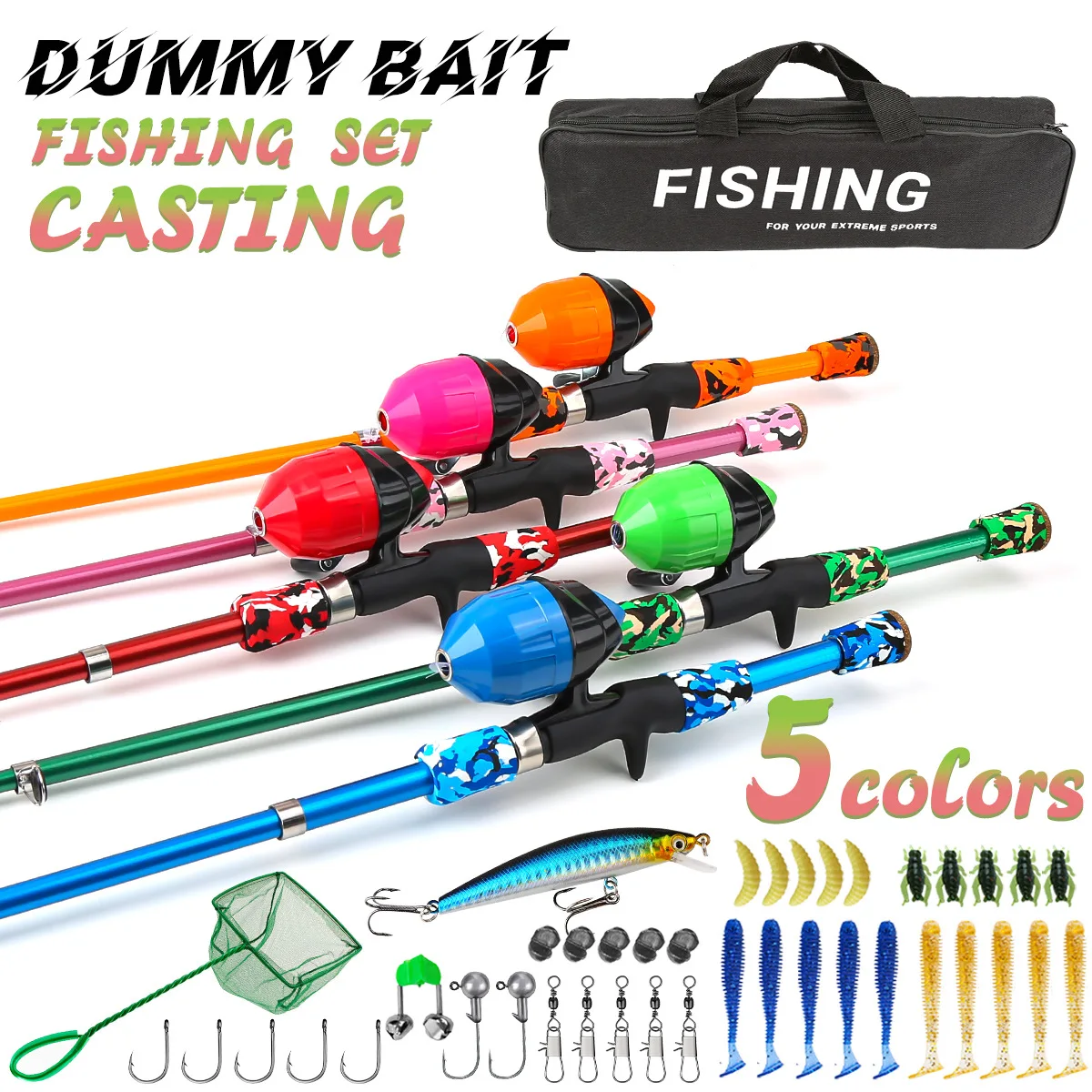 Combo de caña de pescar y carrete para niños, kit completo, caña de lanzamiento telescópica con carrete Spincast para niños y niñas