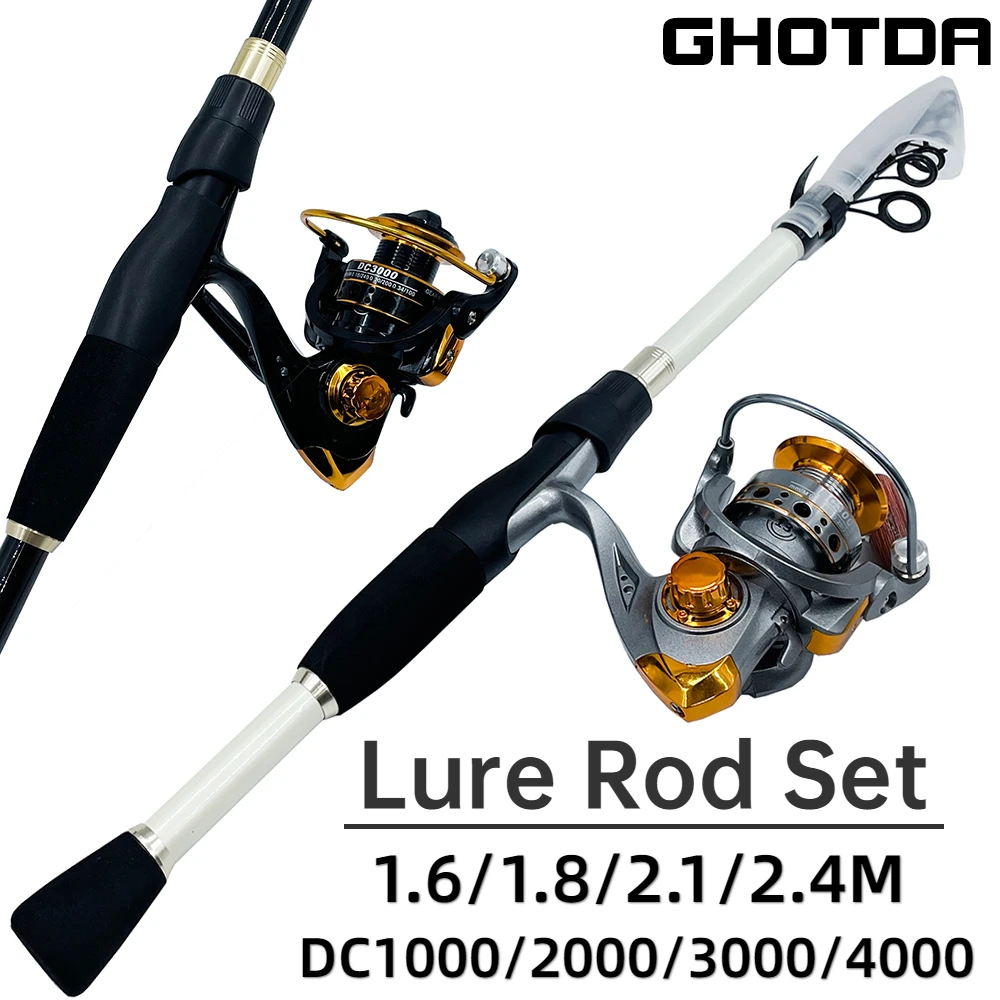 GHOTDA Ultralight Telescopic Carbon Fishing Rod and 5.2:1 Reel Kit 1.6 /1.8 /2.1 /2.4 M Travel Spinning Pole Accessories Pesca