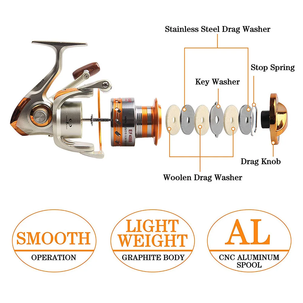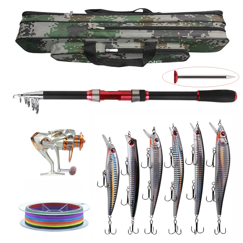 Longitud de la varilla: 2,1 m, 2,4 m, 2,7 m, 3,0 m Modelo de carrete: EF2000 Material de la varilla: fibra de carbono Bolsa de pesca: negro/camuflaje Paquete: Caña de pescar de fibra de carbono Carrete de Metal Línea PE de 100m 6 piezas de cebo duro Bolsa de pesca (camuflaje/verde al azar) Características: Combinación de caña perfecta, pesca fácil Paquete de bolsa, fácil de llevar Nota: Algunos colores pueden ser diferentes con la foto. La medición puede tener algunos errores. Por favor, no se preocupe. Gracias