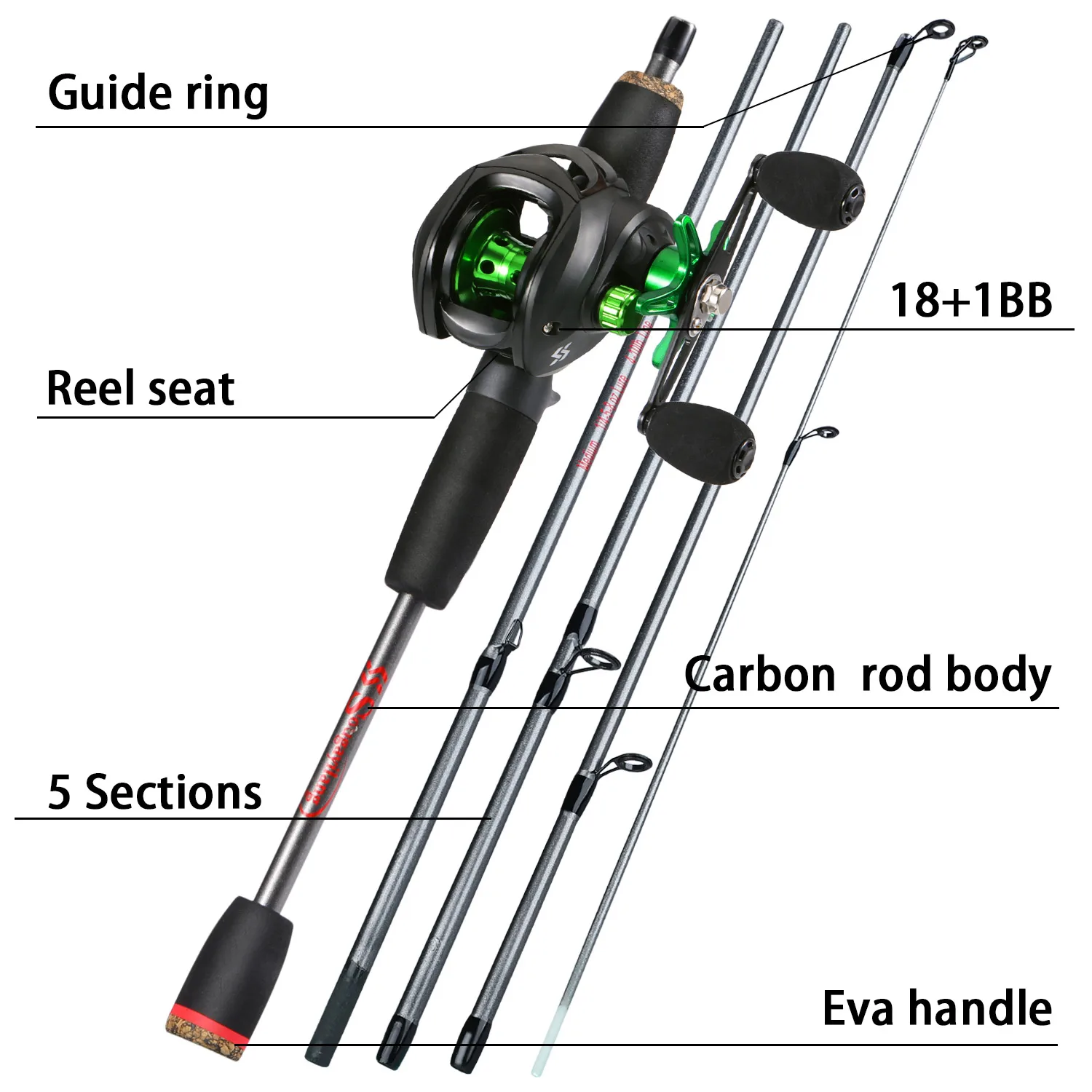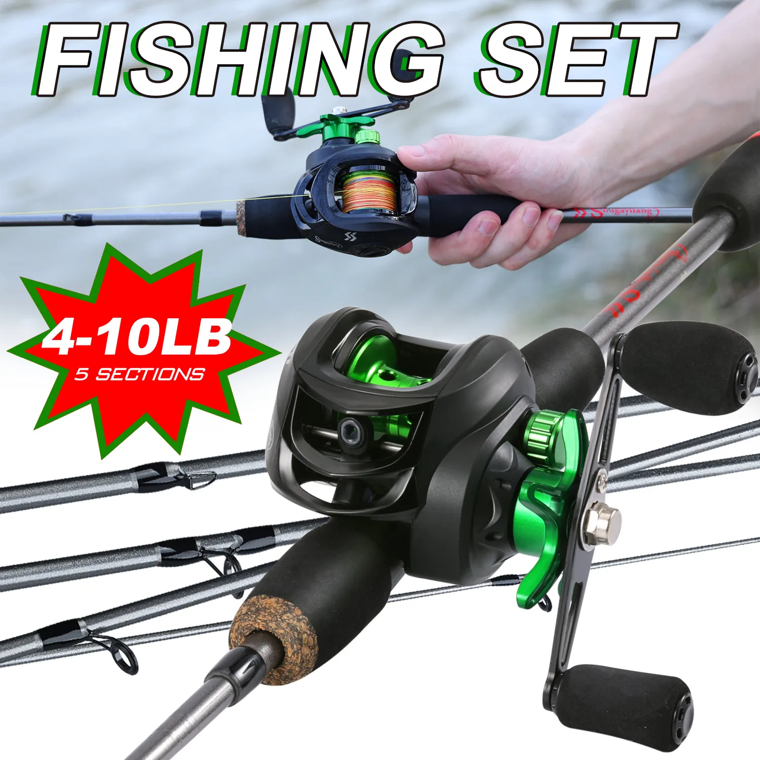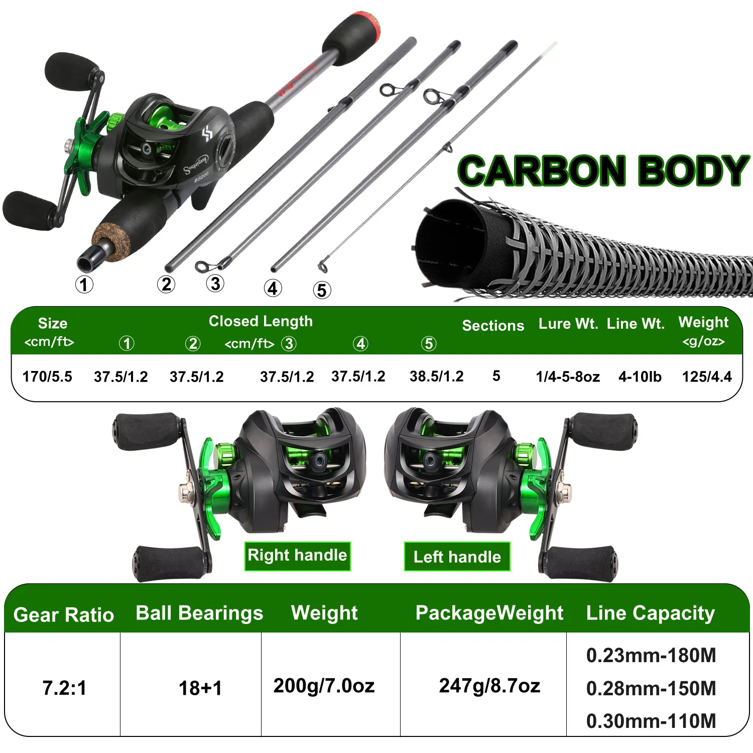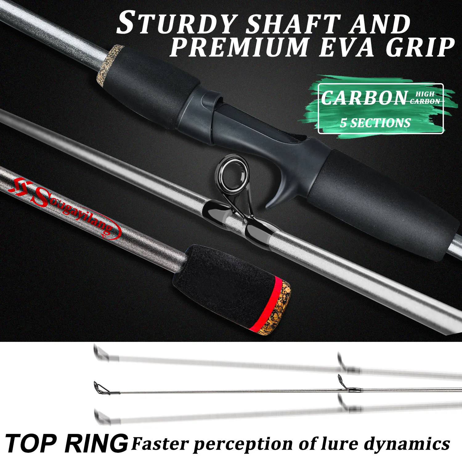 Combo de caña de pescar Sougayilang, caña de fundición de fibra de carbono de 1,7 m y carrete de lanzamiento de cebo con línea de Pe libre, arrastre máximo de 10kg para lubina