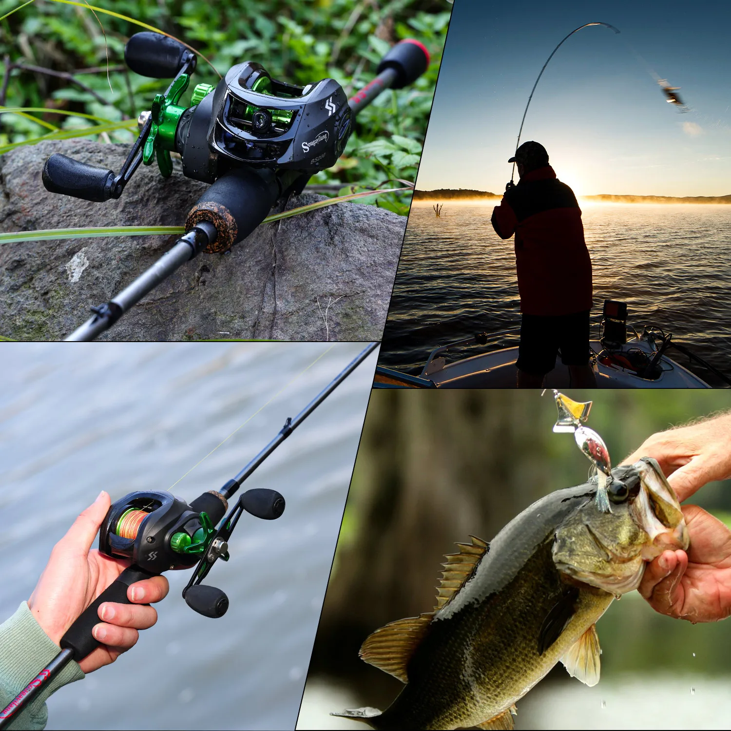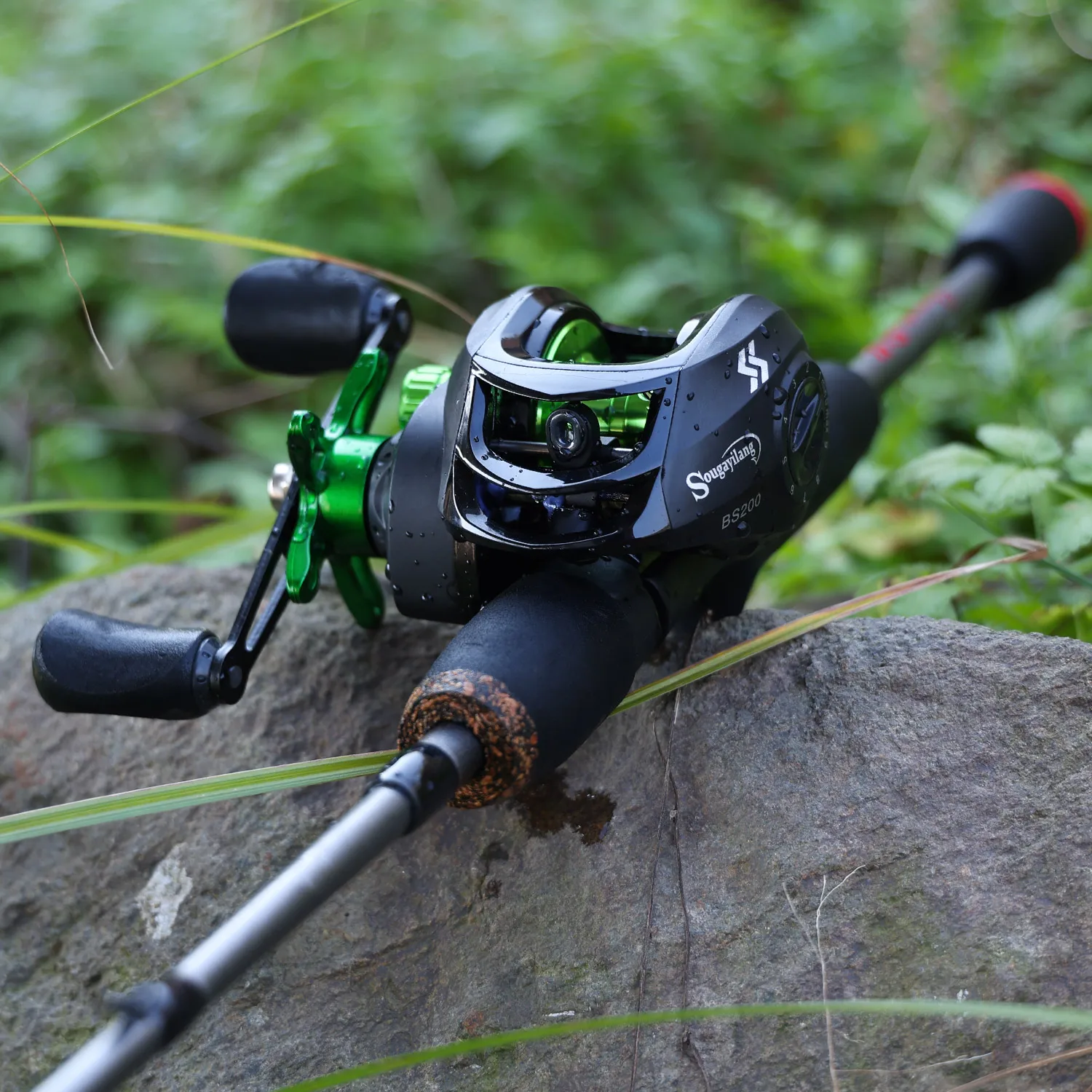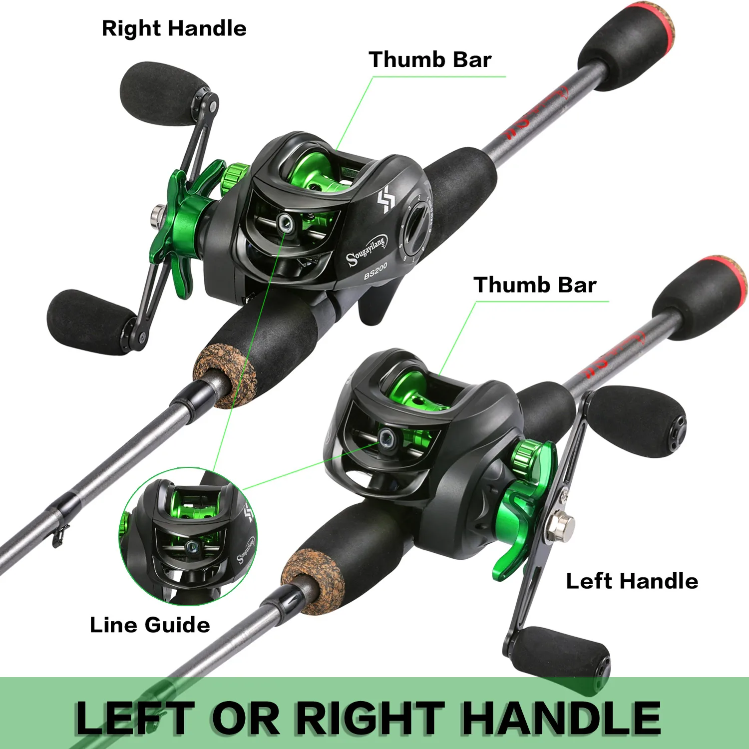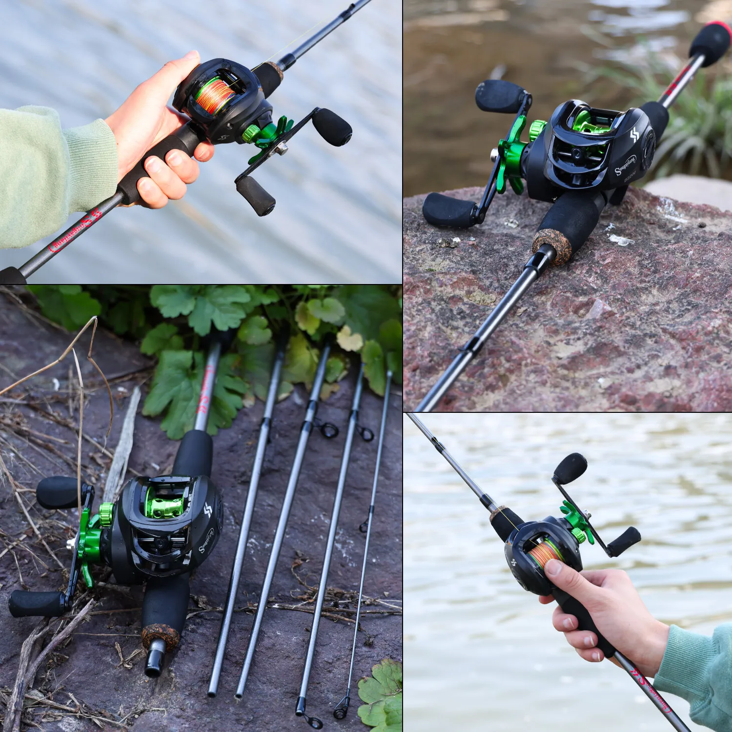 Combo de caña de pescar Sougayilang, caña de fundición de fibra de carbono de 1,7 m y carrete de lanzamiento de cebo con línea de Pe libre, arrastre máximo de 10kg para lubina