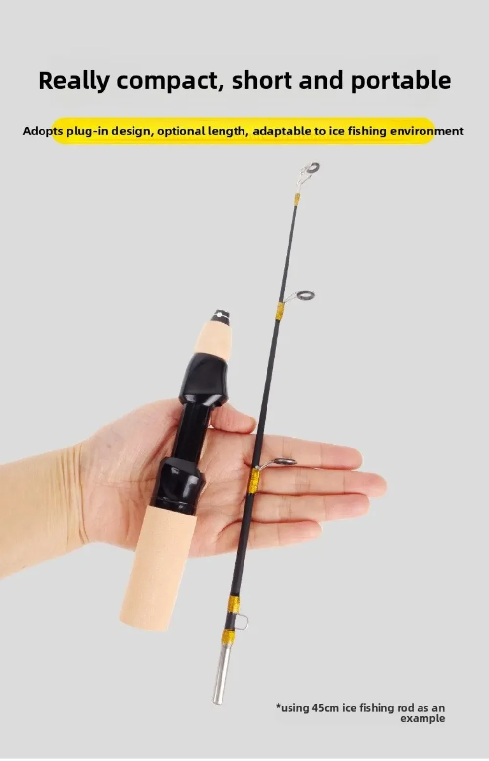 Compacto y portátil: el tamaño de la mini caña de pescar la convierte en un compañero de viaje perfecto para los pescadores en movimiento.