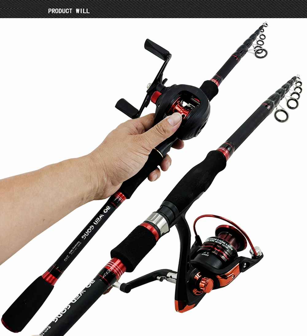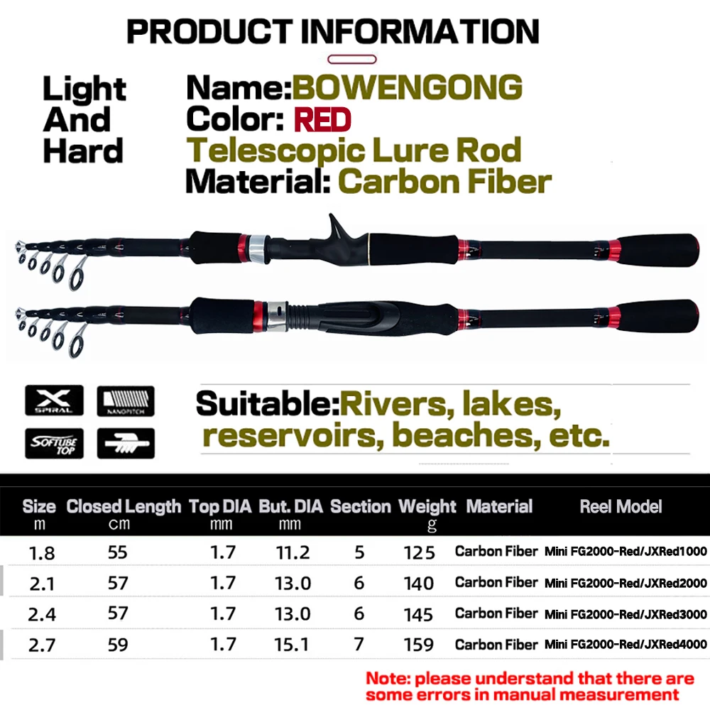 ¡Presentamos nuestra nueva caña de señuelo telescópica de carbono MH Power, caña giratoria de fundición de viaje ultraligera! Con opciones de 1,8 m, 2,1 m, 2,4 m, 2,7 m y tamaños y de 5 a 7 Secciones, esta caña de pescar es versátil y adecuada para una variedad de experiencias de pesca. Hecha de material de fibra de carbono de alta calidad, nuestra caña es potente, sensible y ligera, lo que facilita el transporte de su captura sin ejercer demasiado esfuerzo.