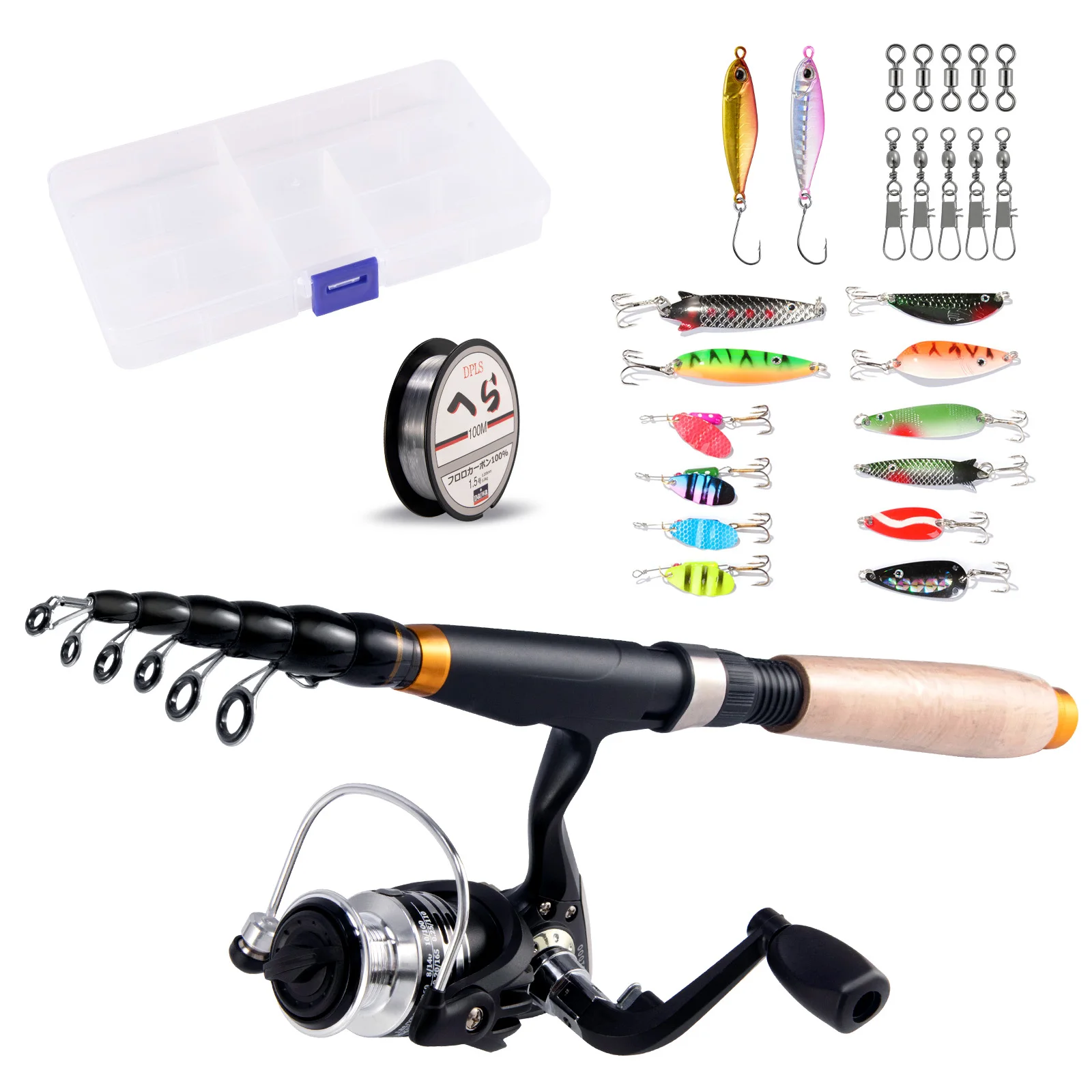 [Caña telescópica portátil]: caña de pescar de viaje con señuelo telescópico giratorio, tamaño reducido 42-44cm, cabe en una bolsa de viaje, fácil de llevar, adecuado para la pesca recreativa al aire libre familiar y pesca en arroyos y estanques.
