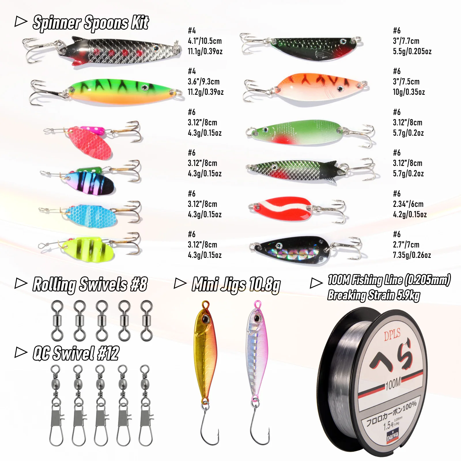 [Adecuado para agua dulce]: además de cañas y carretes, también ofrecemos una amplia gama de equipos de pesca de agua dulce de alta calidad. Como Señuelos de Pesca, Mini Jig, Spinner, cucharas, ideal para atrapar peces pequeños en arroyos y estanques, ¡la trucha marrón también es una buena opción!