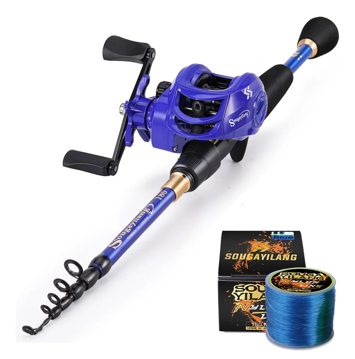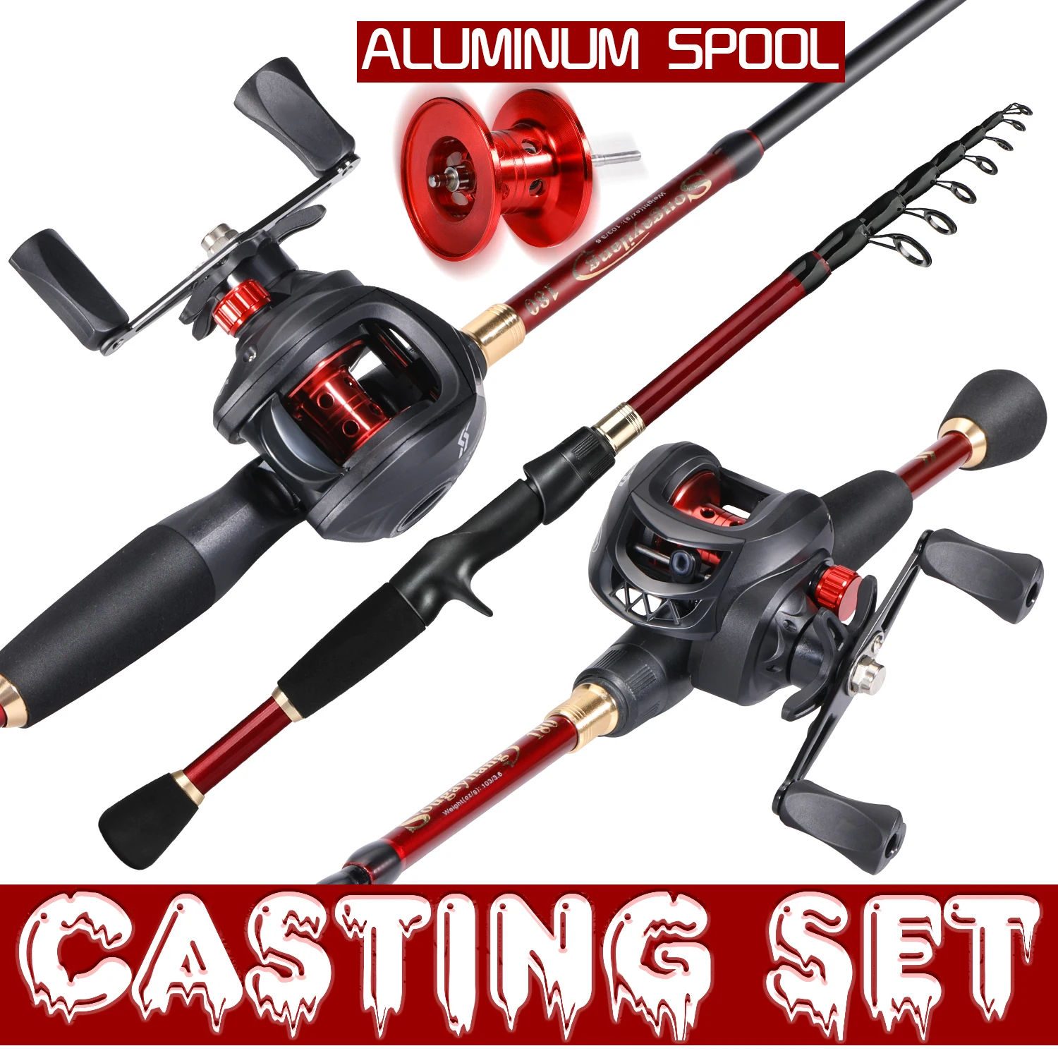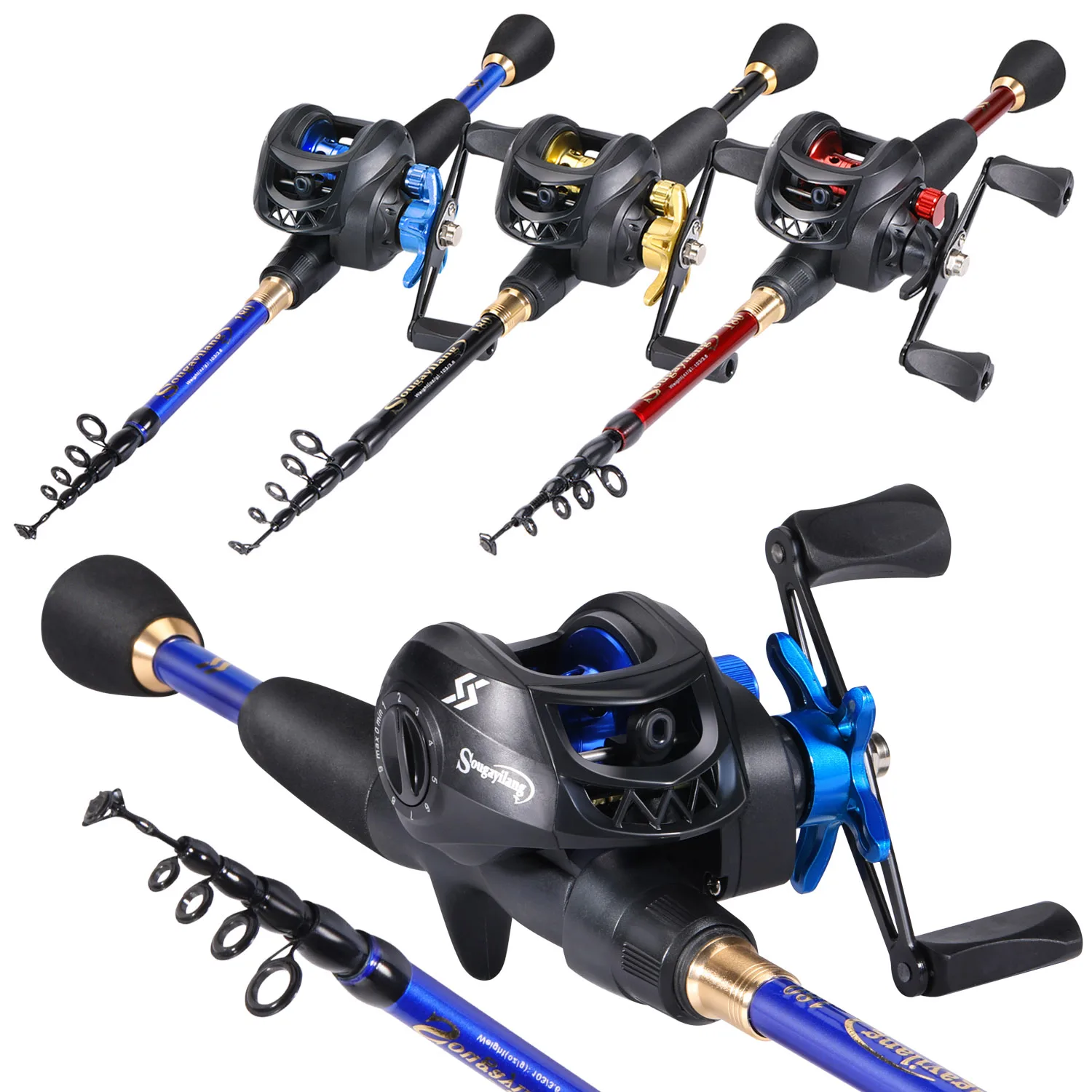 Sougayilang Casting Canna de pescar y carrete Combo 1,8-2,4 m Canna de pescar de fibra de carbono y 8,1:1 relación de engranaje 7,2:1 carrete de pesca de fundición Pesca