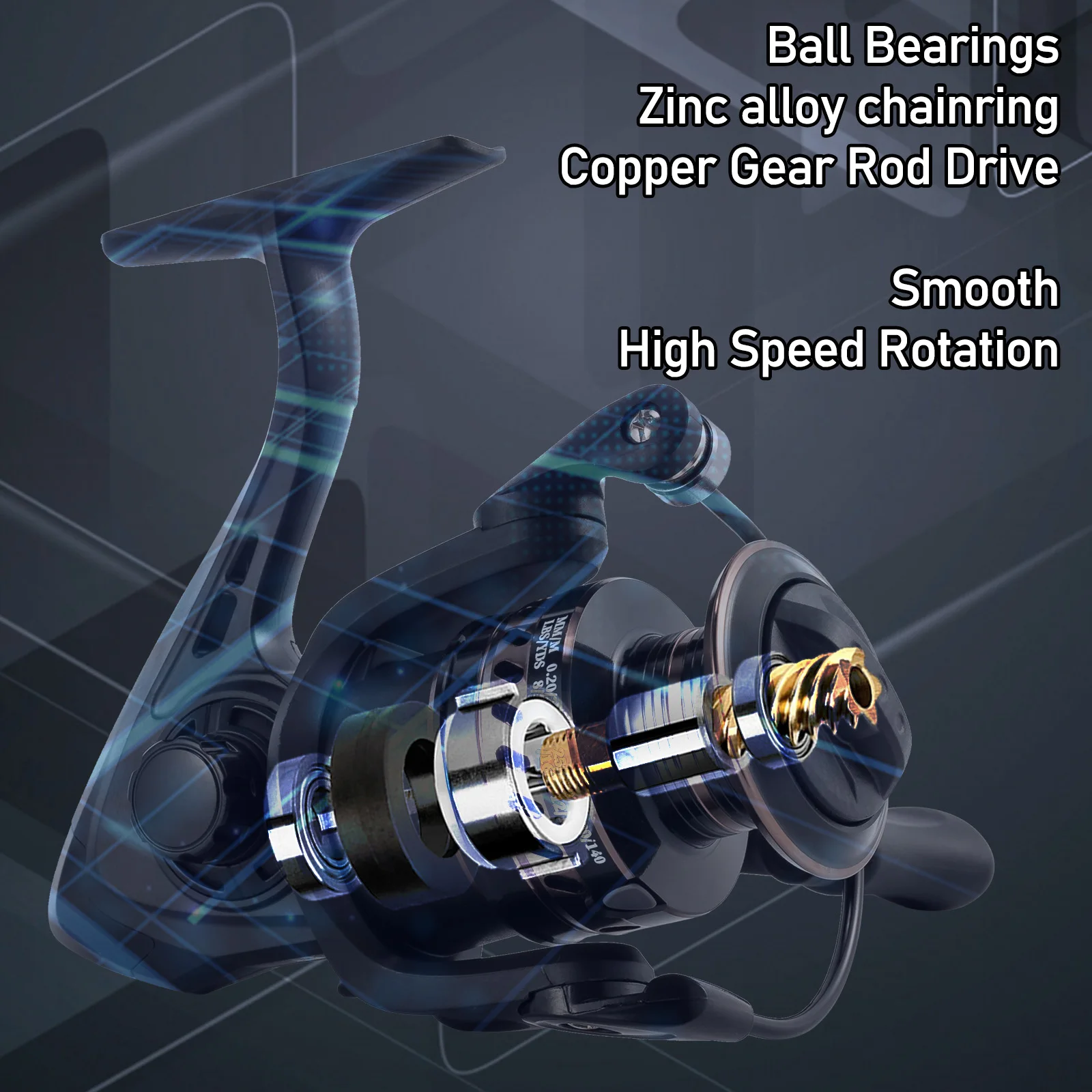 4. Carrete giratorio: El giratorio tiene un mango intercambiable izquierdo/derecho, lo que le permite personalizarlo según sus preferencias. La función antirretroceso de bloqueo instantáneo garantiza un juego de ganchos sólido, mientras que el carrete de metal duradero y la relación de engranaje de 5,2: 1 proporcionan un rendimiento suave y fiable.