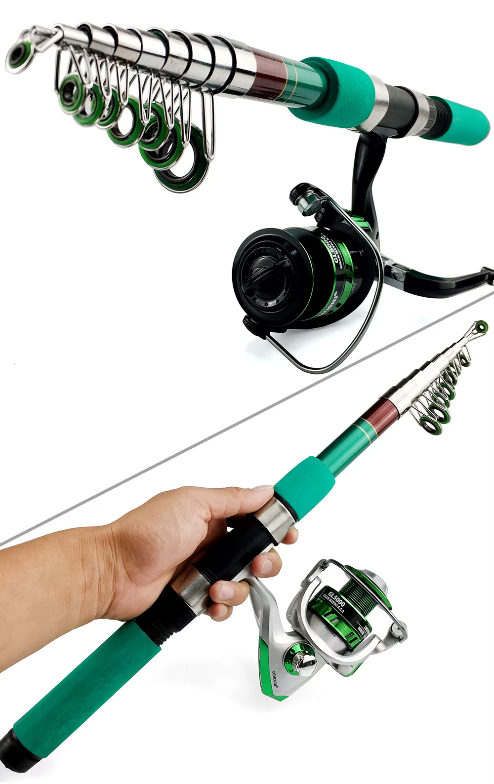 3. Caña de pescar de longitud ajustable para situaciones donde el equipo de pesca de tamaño completo es incómodo.