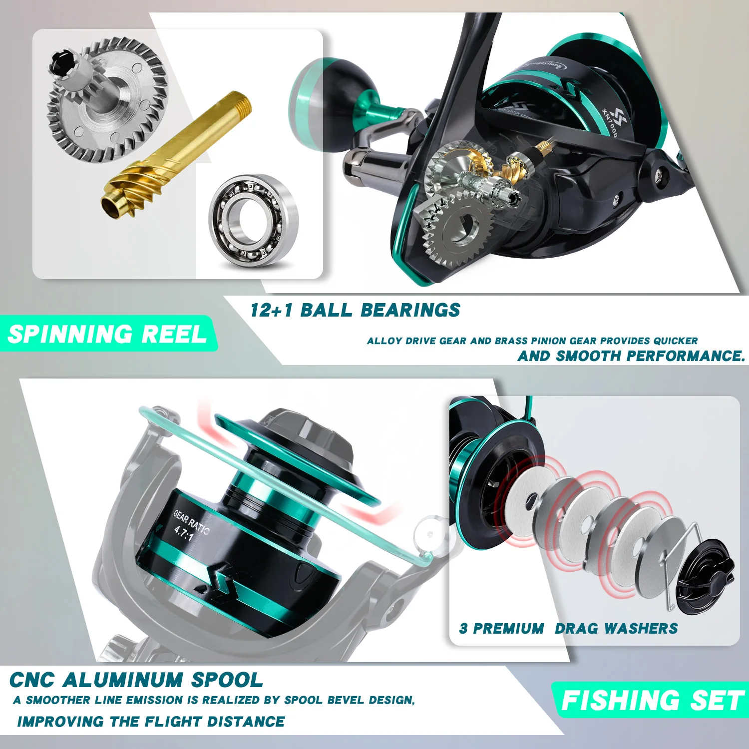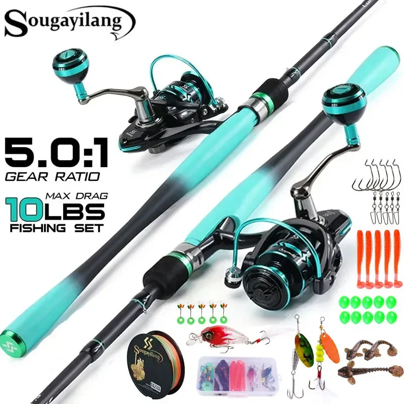 Combo de cañas de pescar Sougayilang, caña giratoria de fibra de carbono de 1,8/2,1 m y carrete giratorio serie 2000 ~ 4000, arrastre máximo de 10Kg para Lucio
