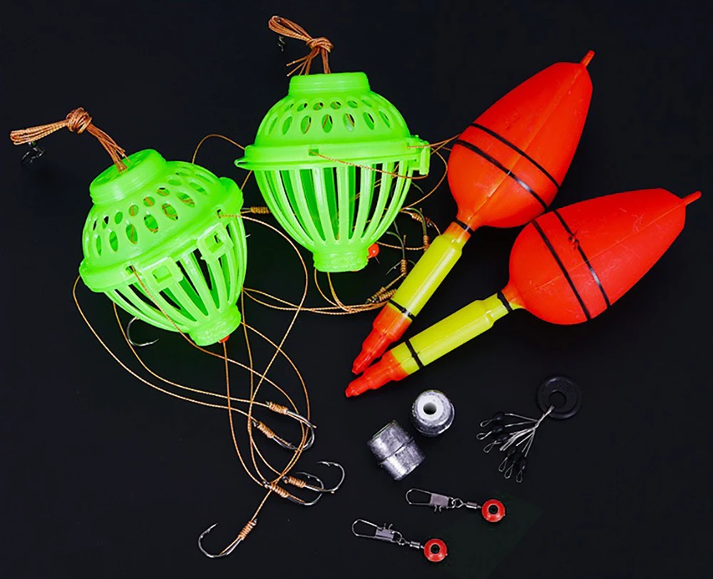 1box Fishing Accessories(Bait Cage*2pc,Space Beans Connecter*2pc, Space Beans*1pc,Float*2pc,Hollow lead pendant*2pc)